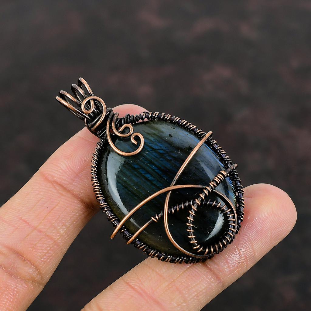 Медный кулон из лабрадорита Ювелирные изделия из медной проволоки Кулон из настоящего драгоценного камня Ювелирные изделия из лабрадорита ручной работы Подарок для нее Кулон из проволочной обмотки
