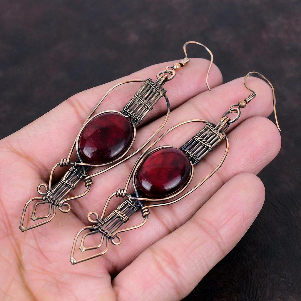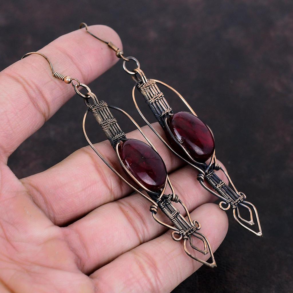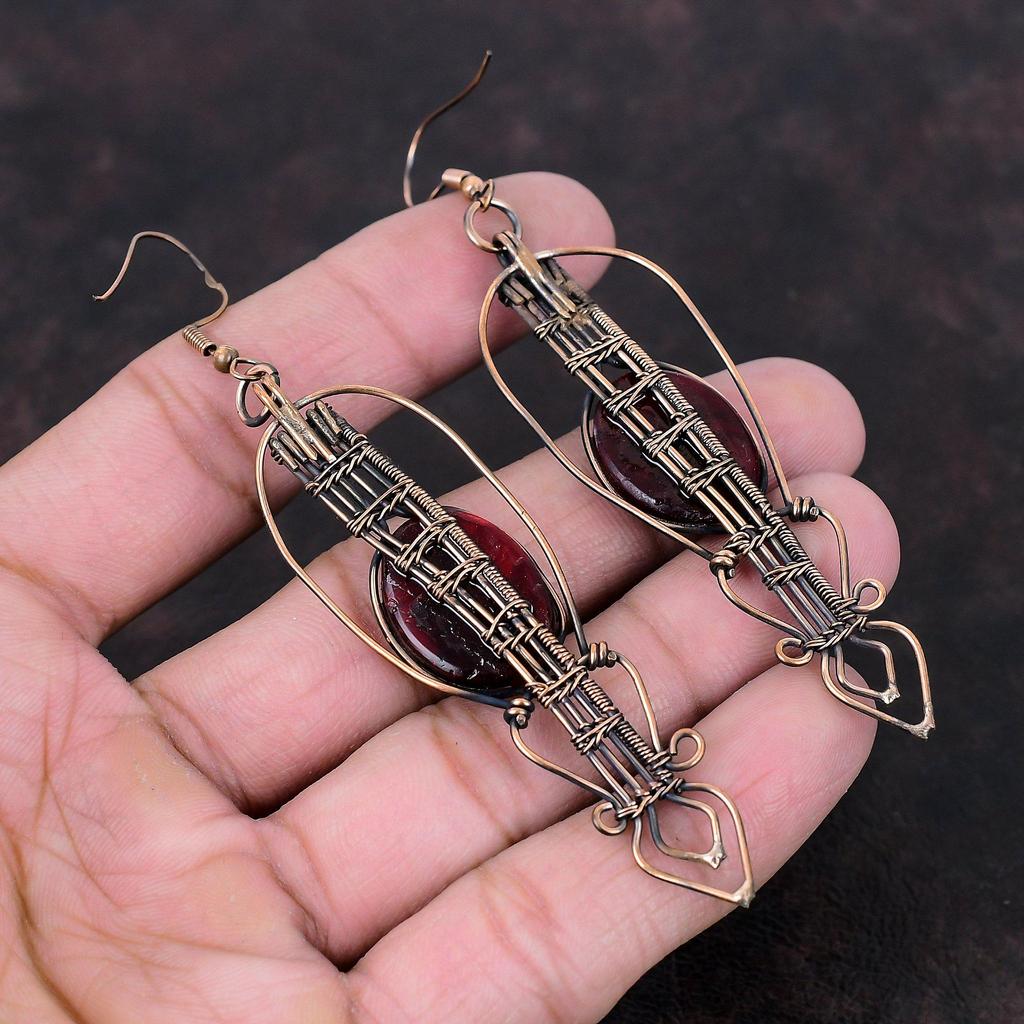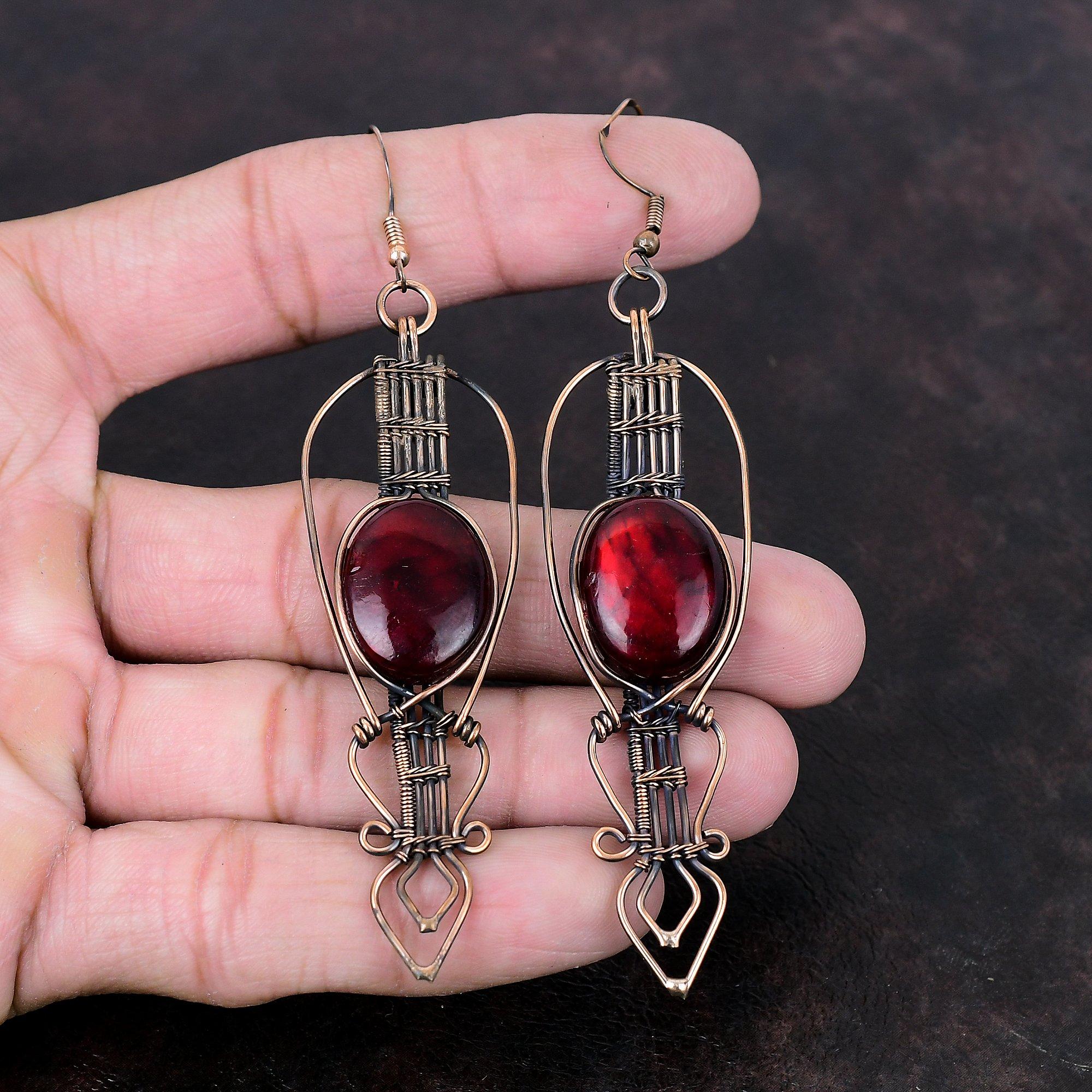 Серьги из красного огненного лабрадорита, медная проволока, обернутые драгоценными камнями, серьги ручной работы из меди, новейший дизайн, проволочная проволока, ювелирные изделия для подарка