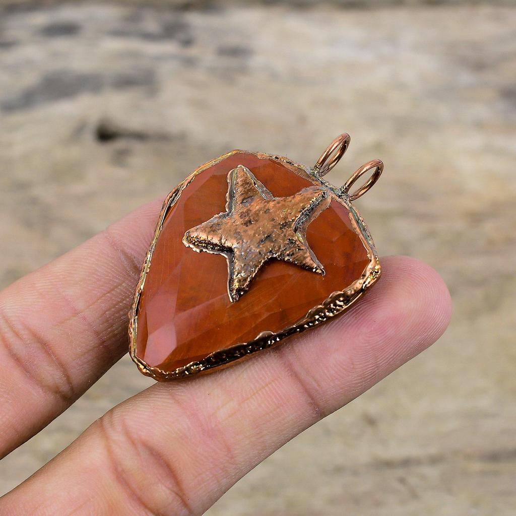 Кулон из ограненного сердолика, гальванопластический медный кулон, ювелирное изделие ручной работы, подвеска из драгоценного камня, гальванопластическое ювелирное изделие, подвеска в виде звезды, подарок на годовщину