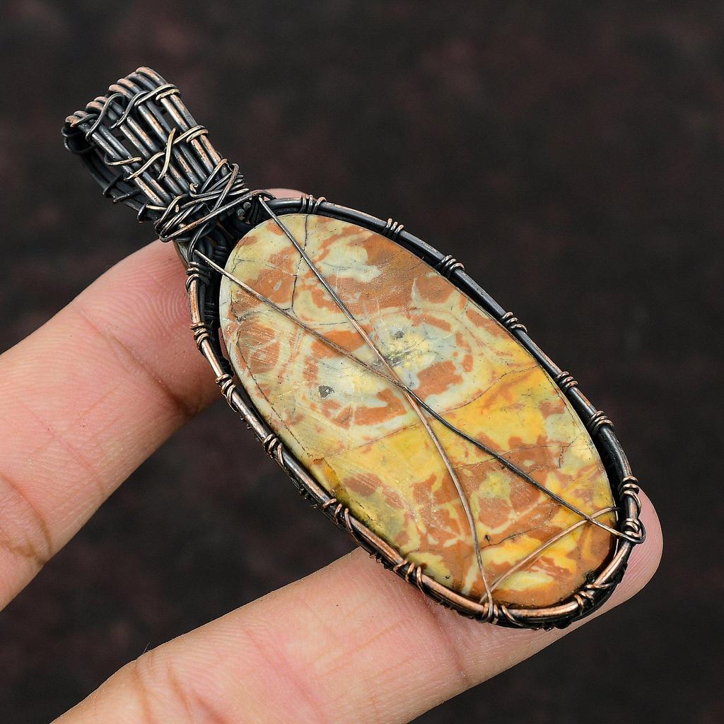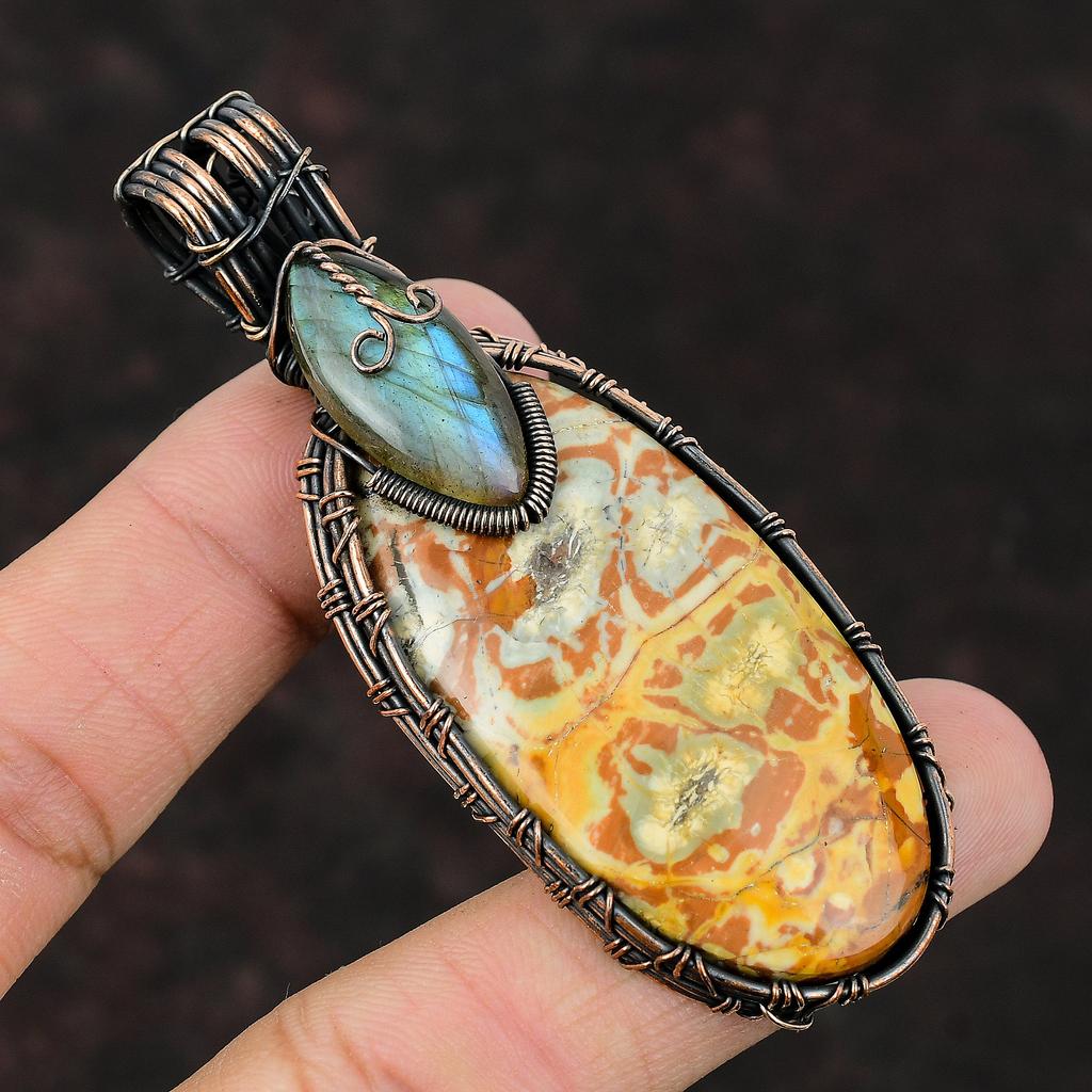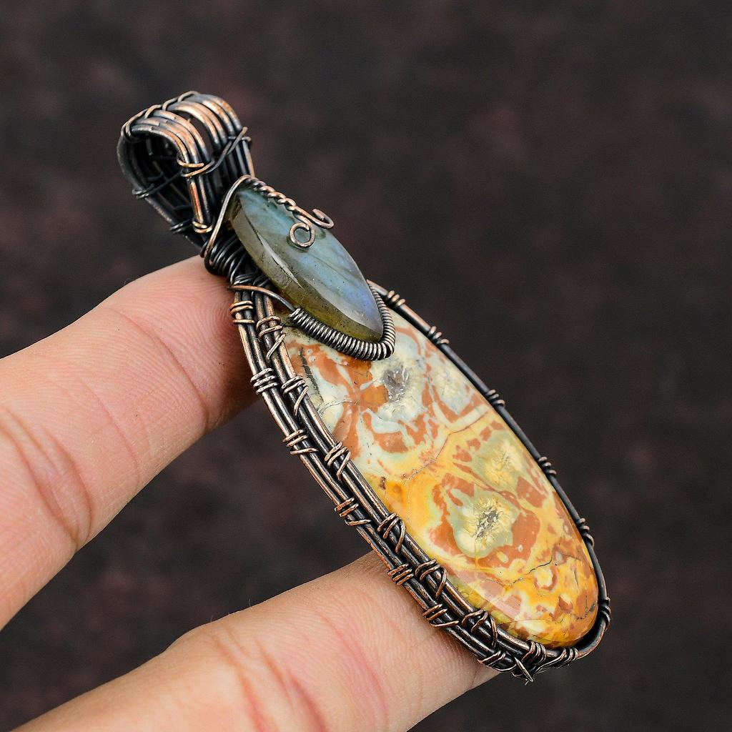 Кулон из яшмы с птичьим глазом, кулон из медной проволоки, кулон ручной работы с драгоценным камнем, медные украшения для подарка, ювелирные изделия из проволочной обмотки, подвеска из лабрадорита