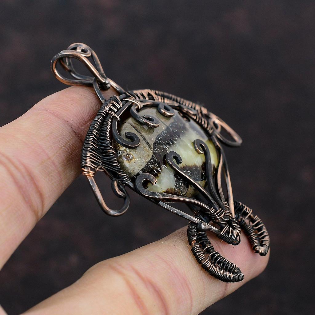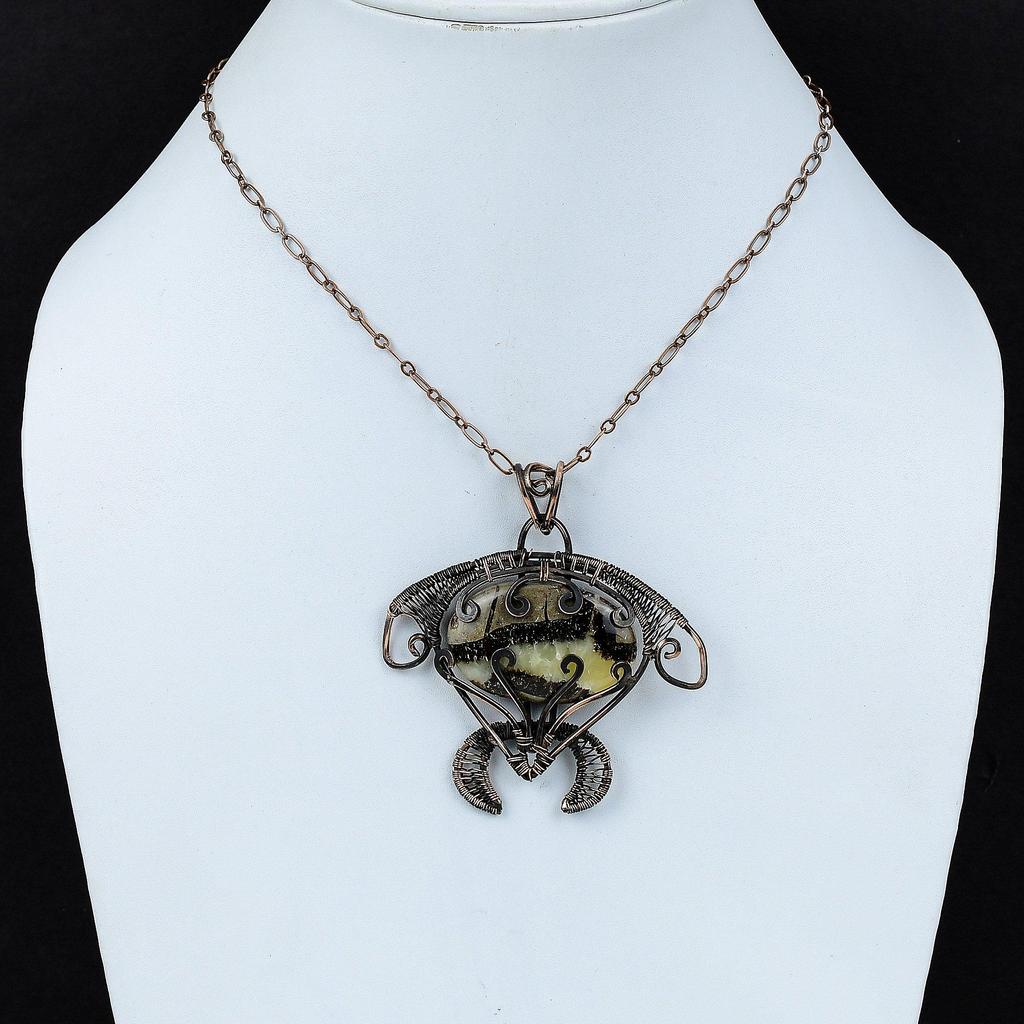Септария Медный Кулон Кулон в виде Черепахи, обернутый медной проволокой Ювелирное изделие ручной работы Кулон с драгоценным камнем для женщин Кулон, обернутый проволокой Подарок для мамы