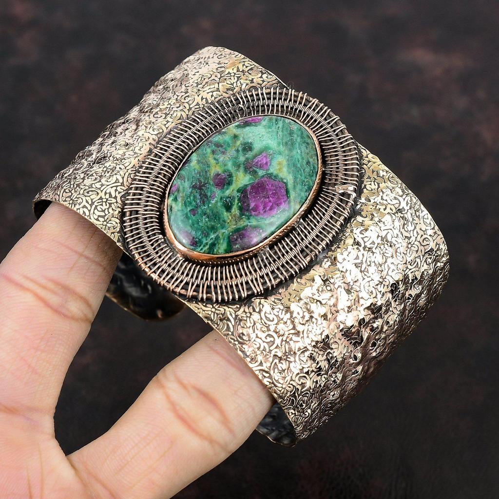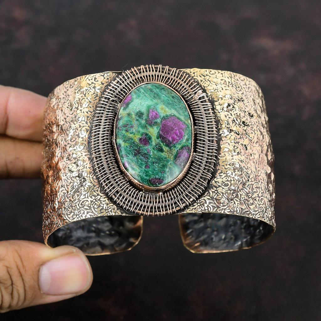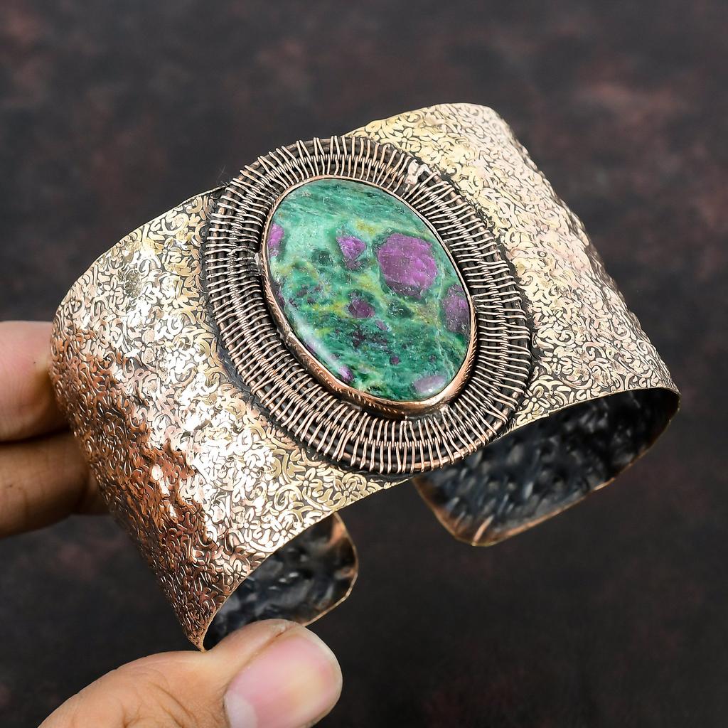 Рубиновый фукситовый медный браслет-манжета с проволочной обмоткой, регулируемый браслет ручной работы, браслет с драгоценными камнями, медная проволочная обмотка, ювелирные изделия, подарки для матери