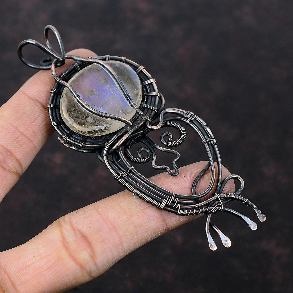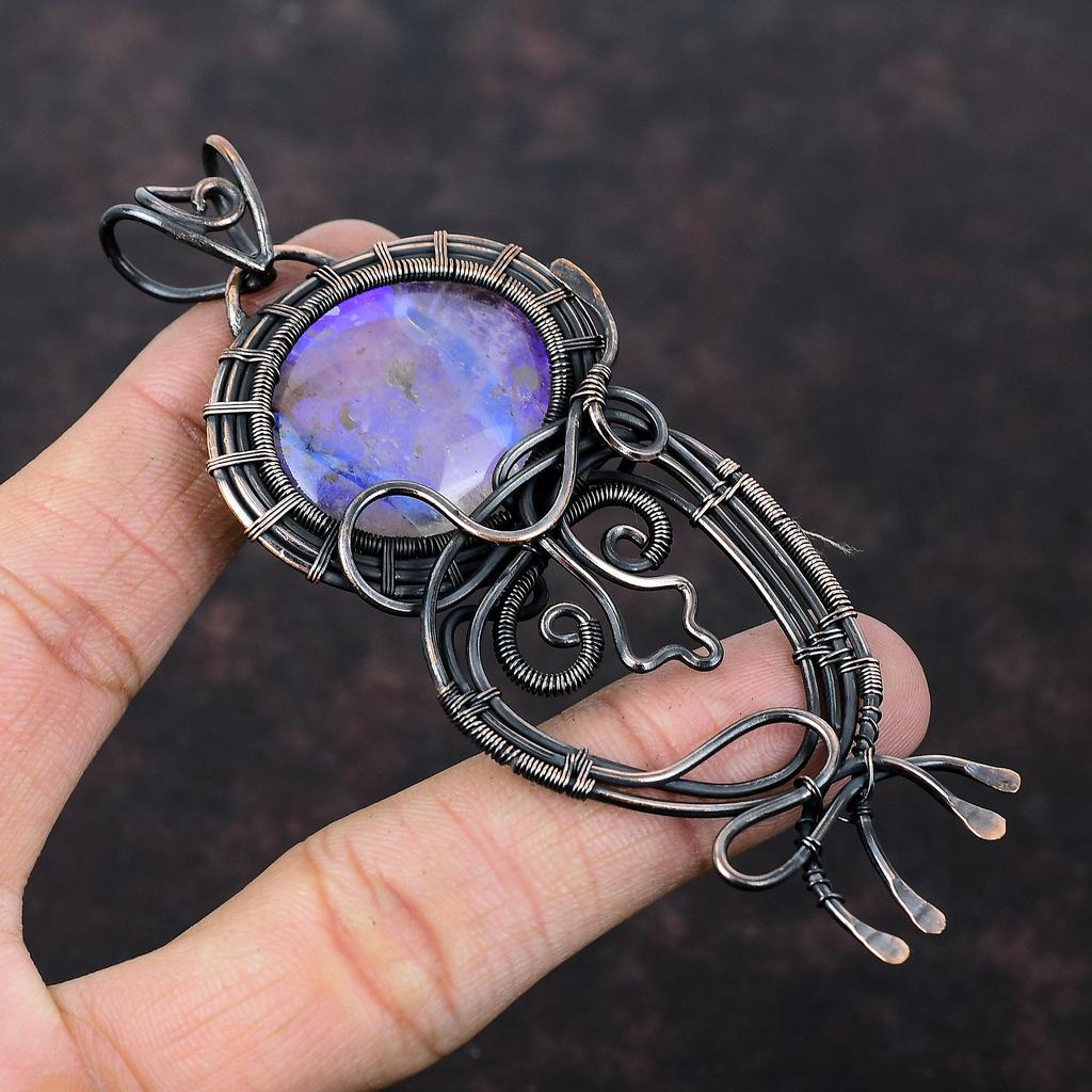 Радужный мистический опаловый кулон, медная проволока, кулон, кулон ручной работы, новый кулон, медная проволока, ювелирные изделия, кулон с драгоценным камнем, подарок для нее