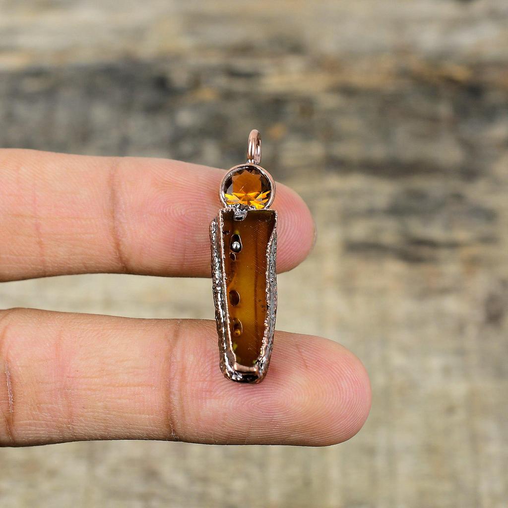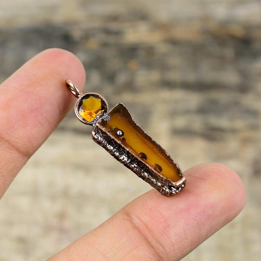 Кулон с агатом Монтана, медный кулон, изготовленный гальваническим способом, кулон с цитрином, кулон с драгоценным камнем ручной работы, ювелирные изделия из гальванической меди, подарки на годовщину