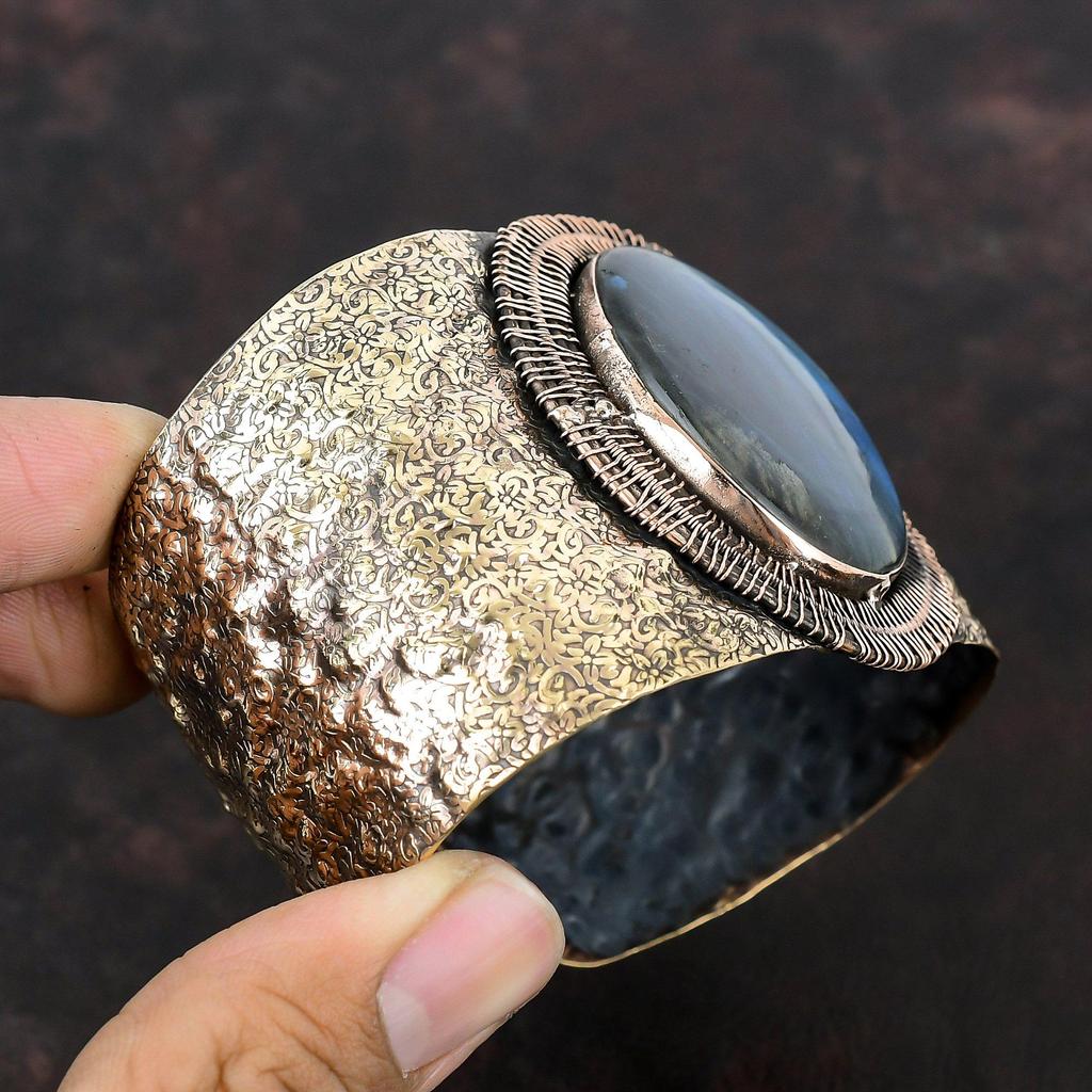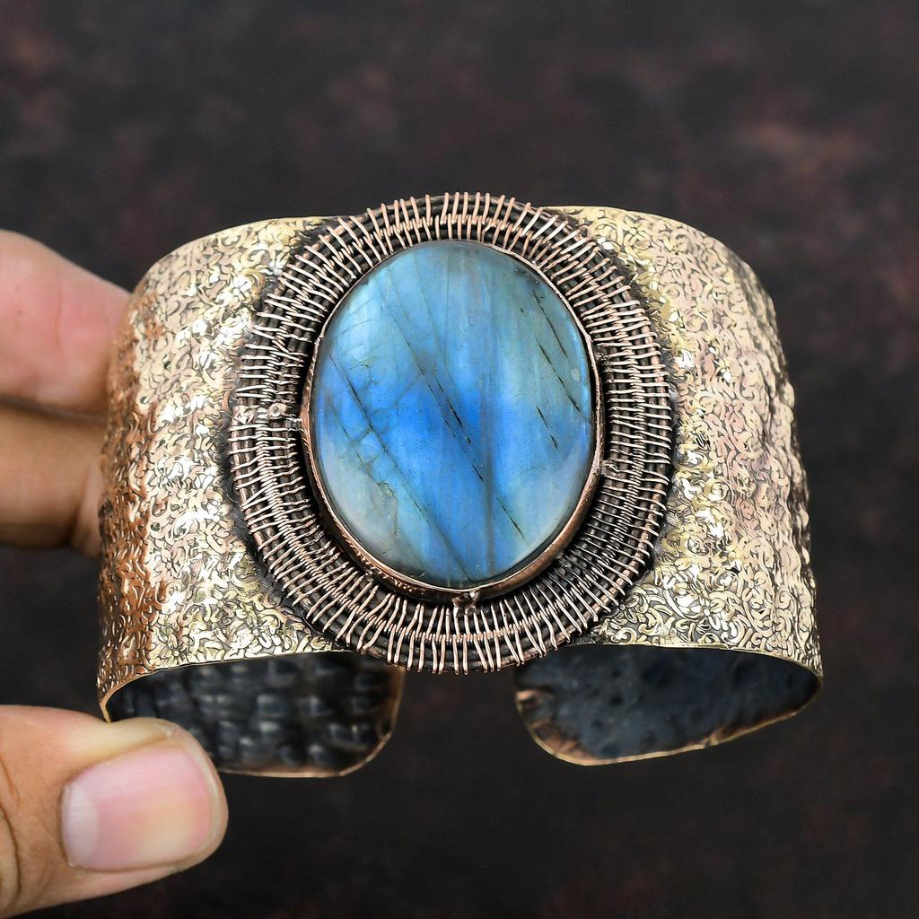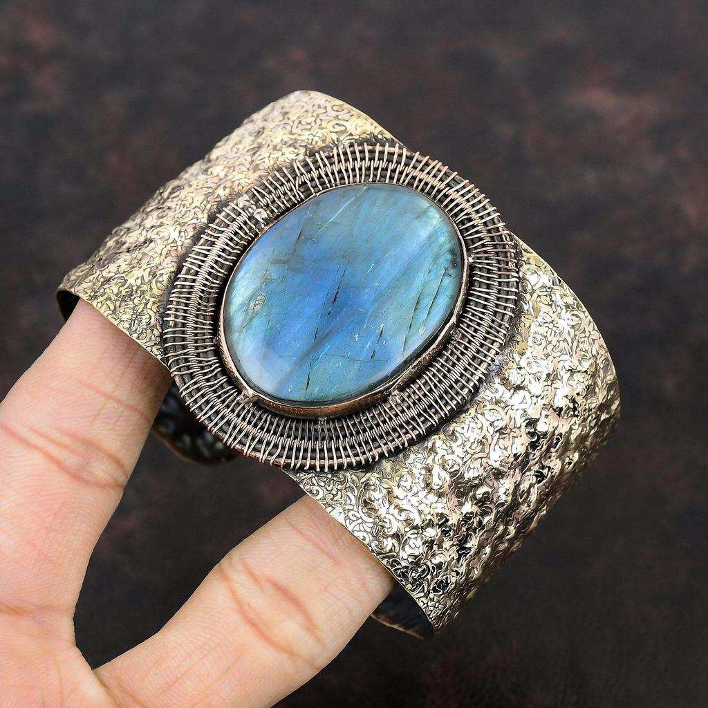 Браслет-манжета из лабрадорита, обмотанный медной проволокой, регулируемый браслет, браслет-манжета из настоящего драгоценного камня, браслет-манжета ручной работы, обмотанный медной проволокой