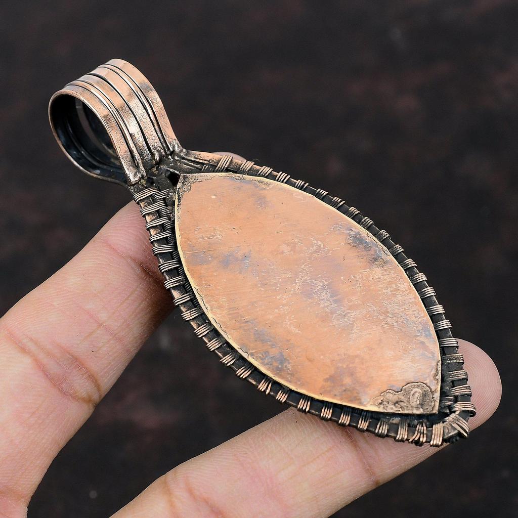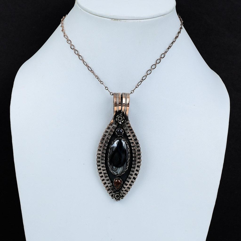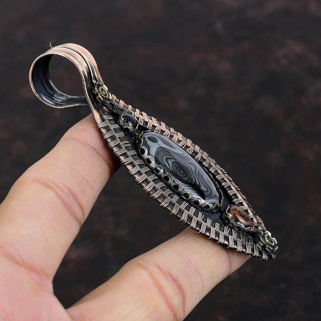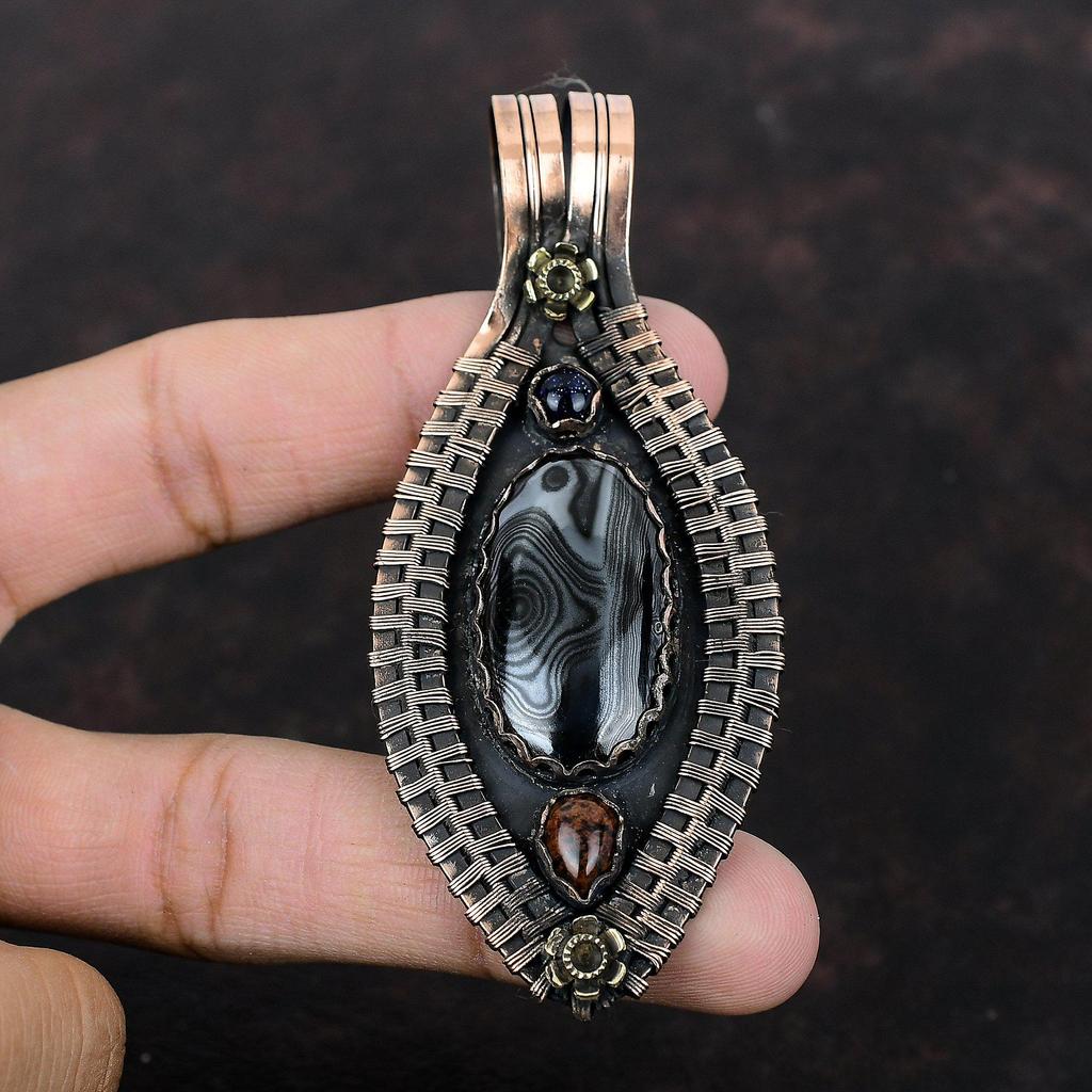 Подвеска Psilomelane из красного дерева, обсидиана и синего солнечного камня, подвеска из медной проволоки, подарок для женщин, подвеска ручной работы, ювелирные изделия из драгоценных камней
