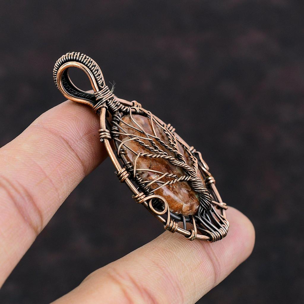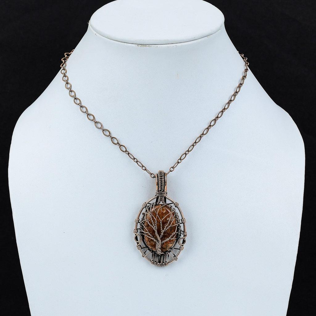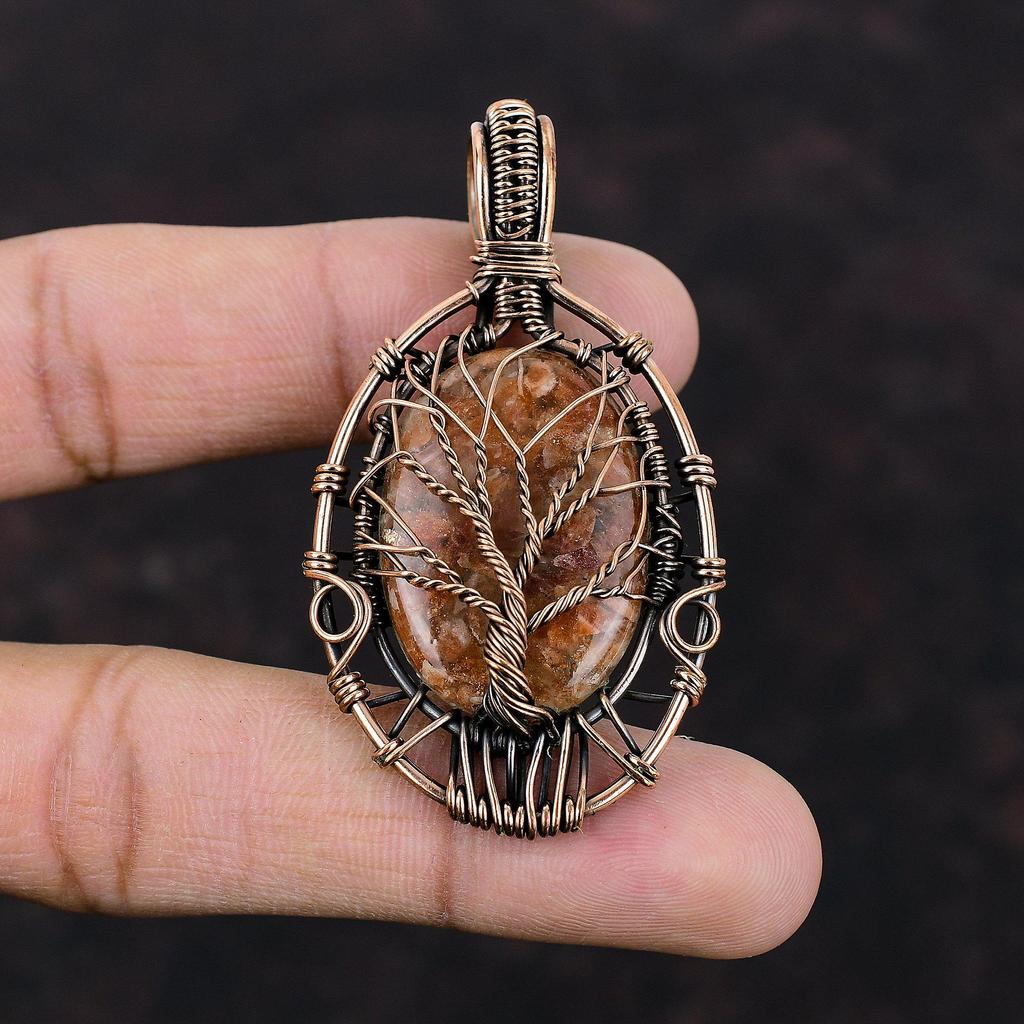 Подвеска из солнечного камня «Дерево жизни», подвеска из медной проволоки, подвеска ручной работы, подвеска из драгоценных камней «Дерево жизни», медная подвеска, подарок для нее