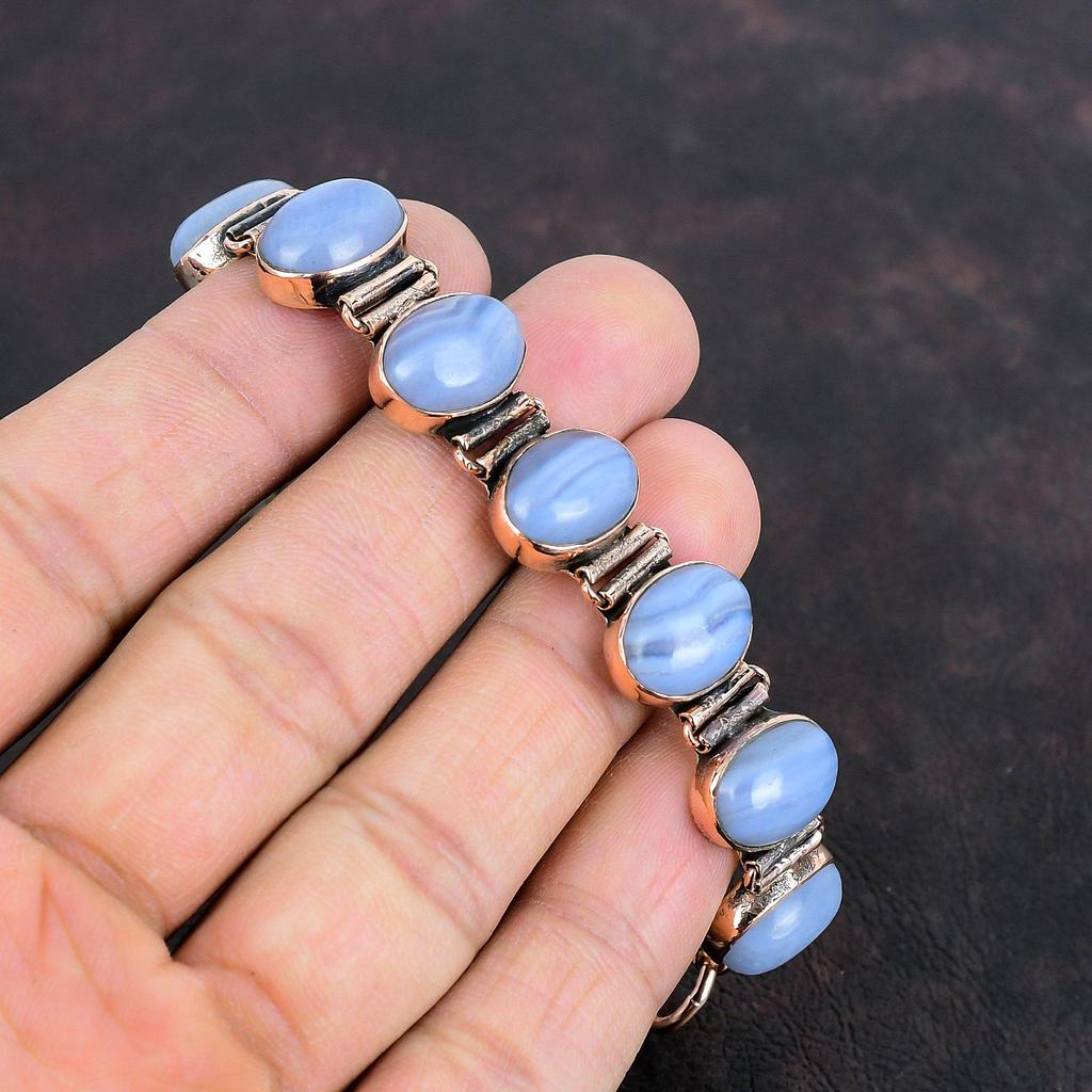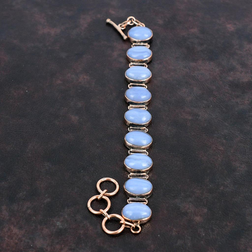 Синий кружевной браслет из агата Медный браслет Ювелирные изделия из натуральных драгоценных камней Регулируемый браслет-цепочка Браслет ручной работы Медные ювелирные изделия Подарки для жены