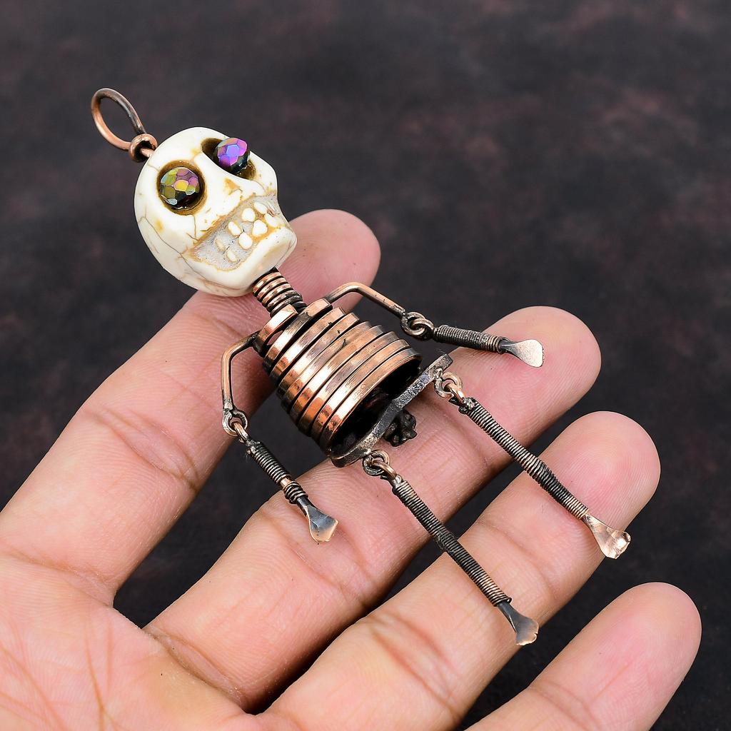 Подвеска из говлита, медная проволока, обернутая подвеска, титановая бусина, подвеска в виде глаз, подвеска в виде скелета, ювелирные изделия ручной работы, ювелирные изделия из драгоценных камней, череп, кость, кулон для лица