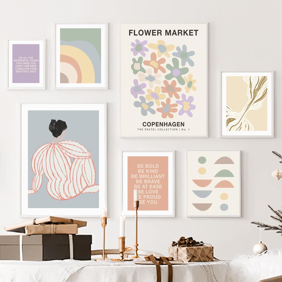 Цветочный рынок Кривая девушка Радуга Абстрактные постеры Печать холст картины скандинавские настенные художественные картины для гостиной домашний декор