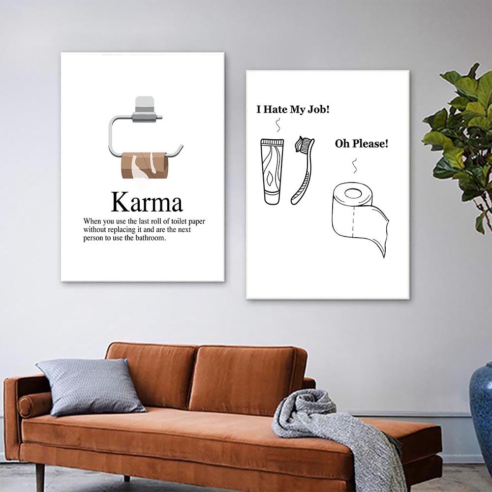 Карма Определение Плакат Печать Настенное Искусство Холст Картина Современный Смешной Знак Для Ванной Туалет Юмор Картины Ванная Комната Домашний Декор