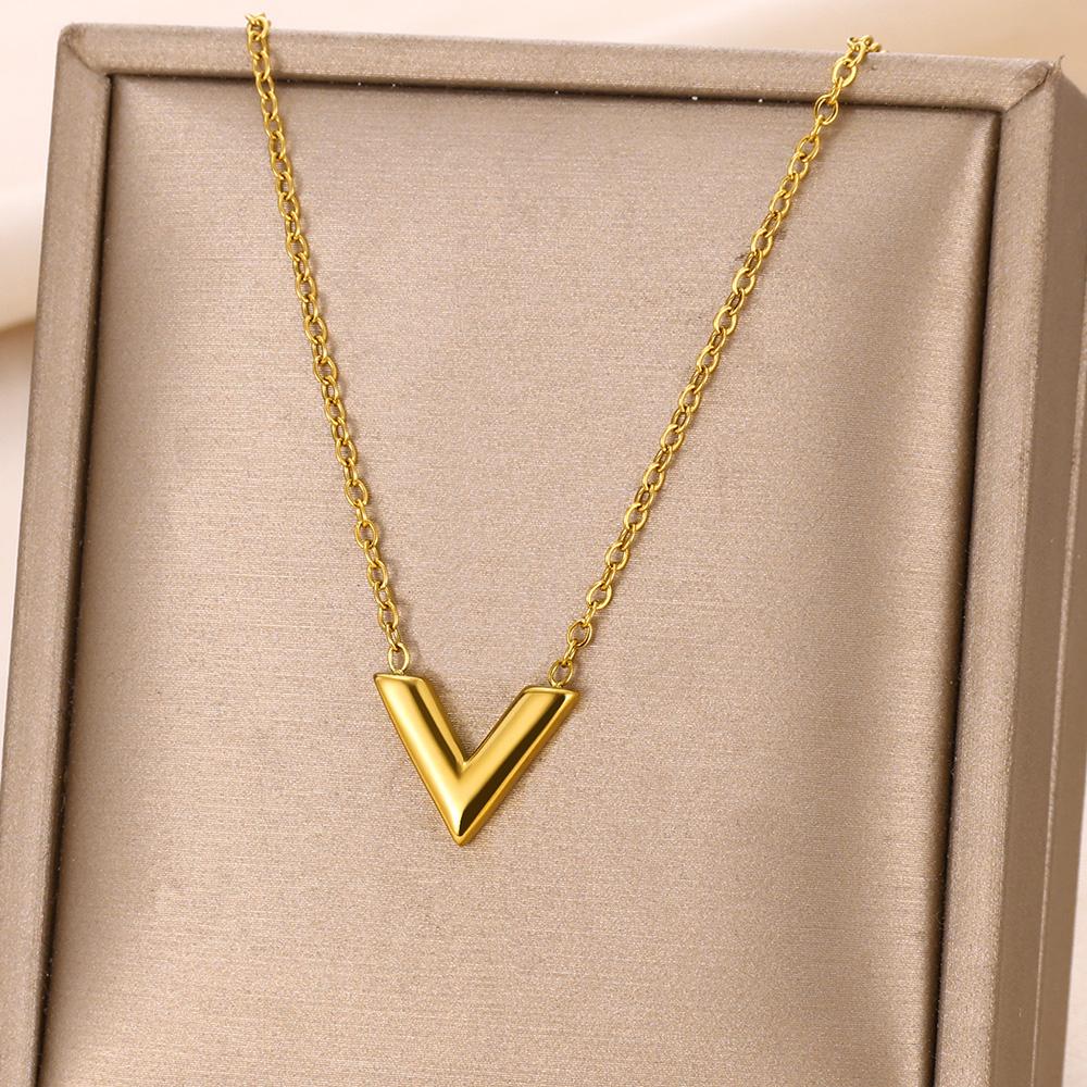 2024 трендовые V-образные ожерелья в стиле минимализм для женщин из нержавеющей стали, ювелирные изделия в корейском стиле, очаровательные аксессуары золотого цвета