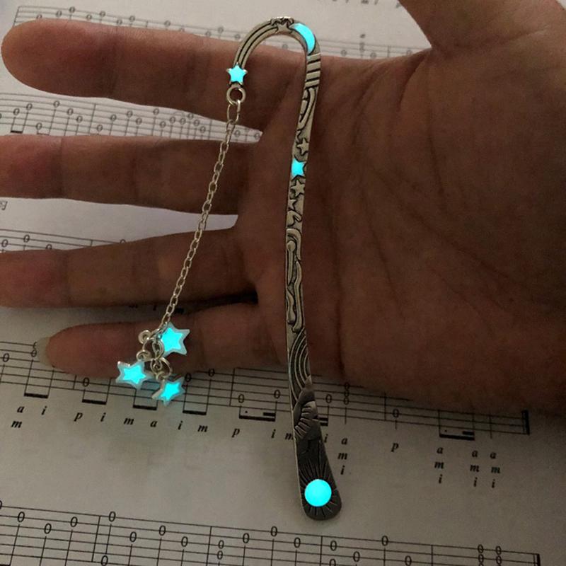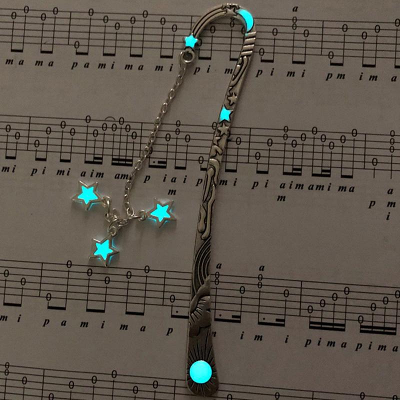 Закладка со светящимися звездами и луной, креативные винтажные металлические закладки в стиле ретро, канцелярские принадлежности