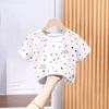 Лето 2024, футболка из чистого хлопка в горошек, детская одежда для девочек, футболка с короткими рукавами для девочек, фиолетовые топы, футболки