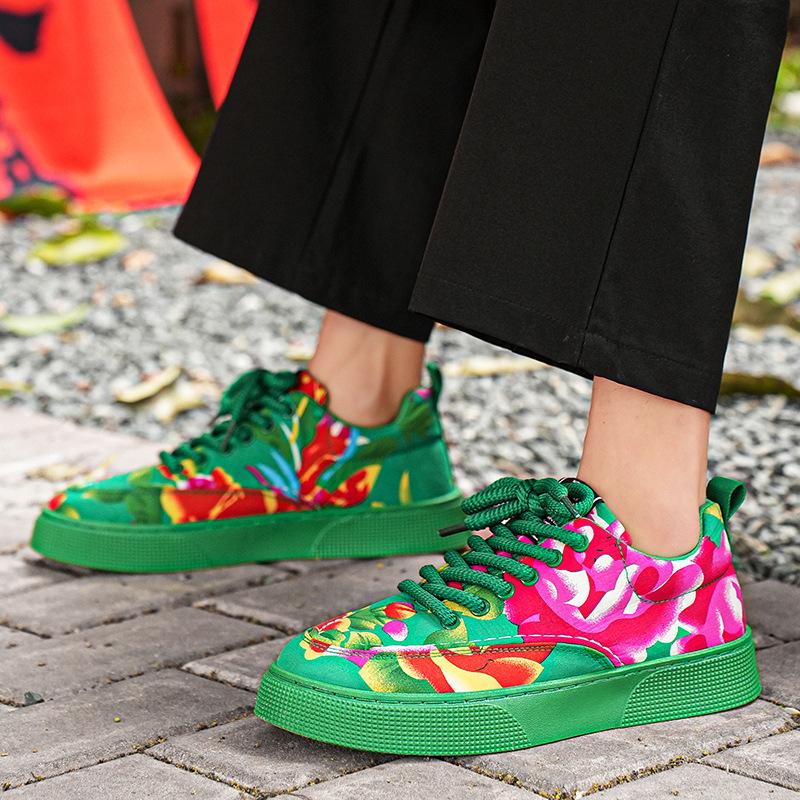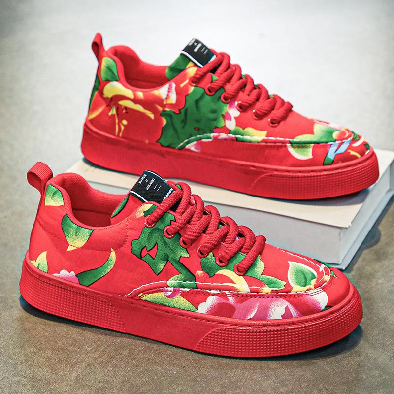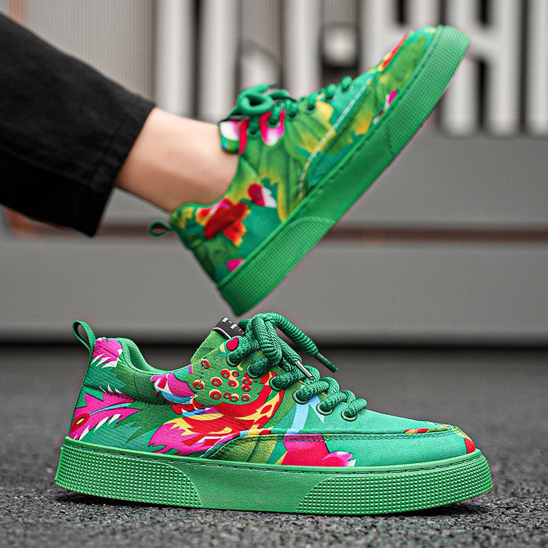 Мужская парусиновая повседневная обувь в китайском стиле с трендовым принтом на плоской подошве, обувь для скейтборда, молодежные уличные крутые кроссовки на шнуровке
