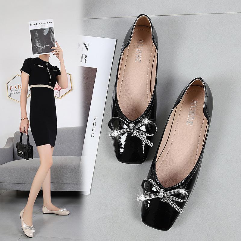 Женские туфли на плоской подошве на низком каблуке. Удобные прогулочные туфли с квадратным закрытым носком. Повседневные балетки с бантом. Нескользящие нарядные туфли для женщин. Легкие туфли на плоской подошве. — купить товар онлайн с бесплатной доставкой по всему миру!