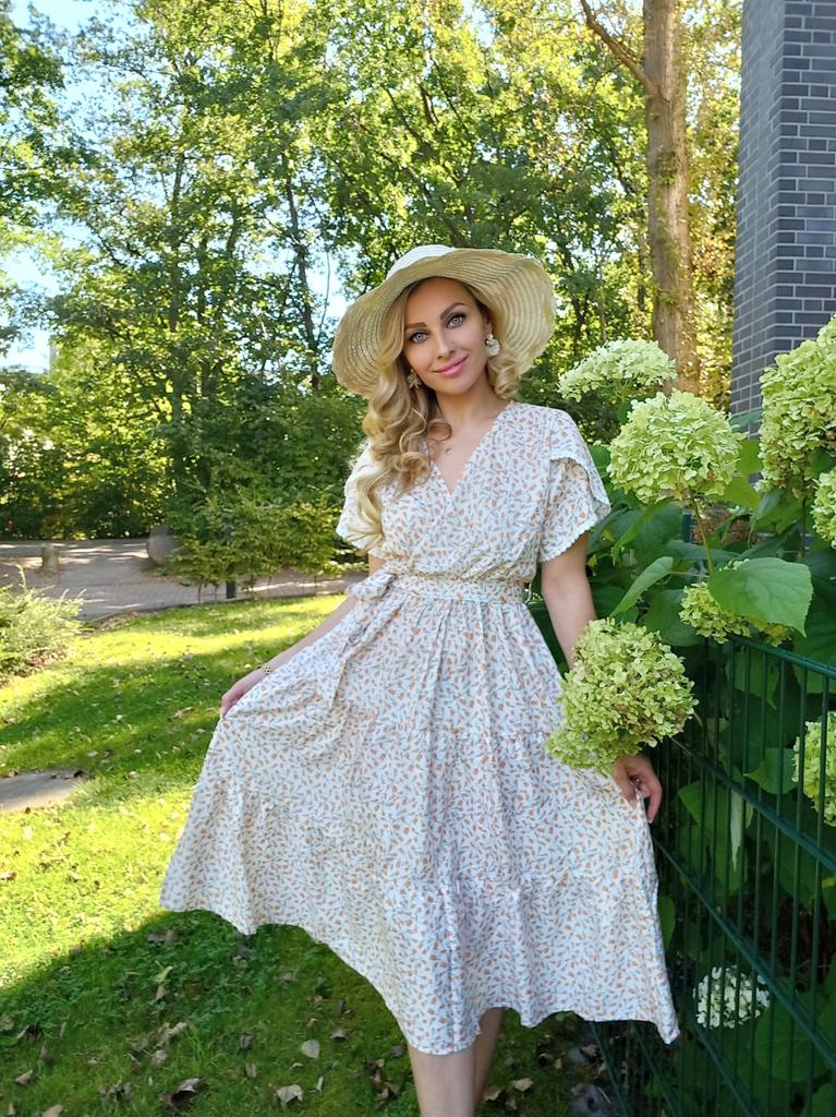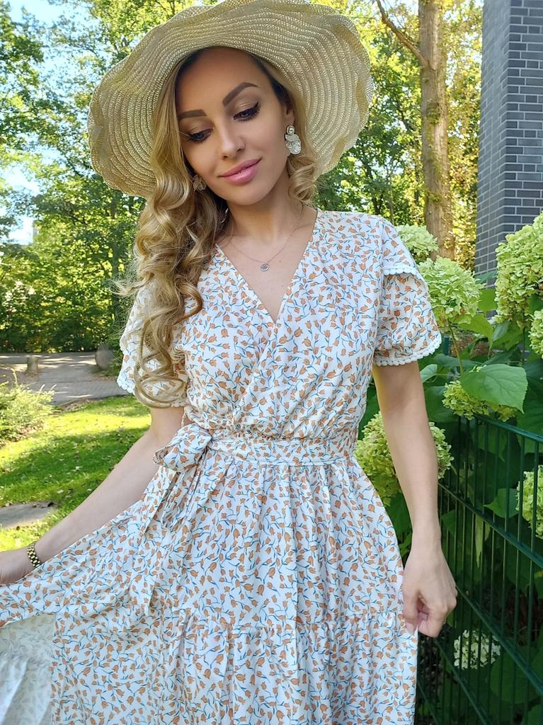 Милое платье, подходящее как для лета, так и для осени или весны. Смотрится красиво на любой фигуре, подчёркивая достоинства и скрывая недостатки. 🔸На выбор несколько не менее привлекательных, чем я выбрала, принтов. Размеры: S-2XL. На мне М. Берите свой размер. - Замеры платья: Длина - 108,5 см ОГ - 106 см ОТ - 68-106 см ОБ - 140 см - Мои параметры: Рост - 164 см ОГ - 86 см ОТ - 67 см ОБ - 95 см 🔸В составе материала полиэстер. Материал не просвечивается, не электризуется, хорошо отпаривается. 🔸Платье А-силуэта. Рукава короткие. На них присутствуют ненавязчивые украшения. Верх на запАх. Талия завышенная на резинке. В комплекте поясок. Сбоку небольшой разрез. 🔸Цена качеству полностью соответствует. Рекомендую, девчули👍 Ставлю ⭐⭐⭐⭐⭐ Большое спасибо продавцу ❤️ и Joom ❤️