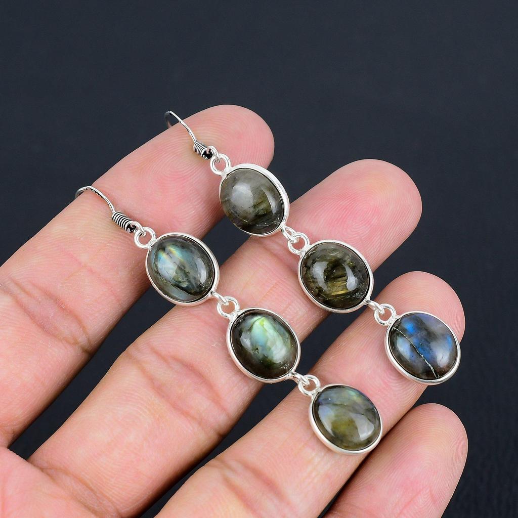 Серьги с натуральным лабрадоритом | Серебро 925 пробы | Серьги-крючки из проволоки | Серебряные серьги ручной работы с подвесками для женщин и девочек