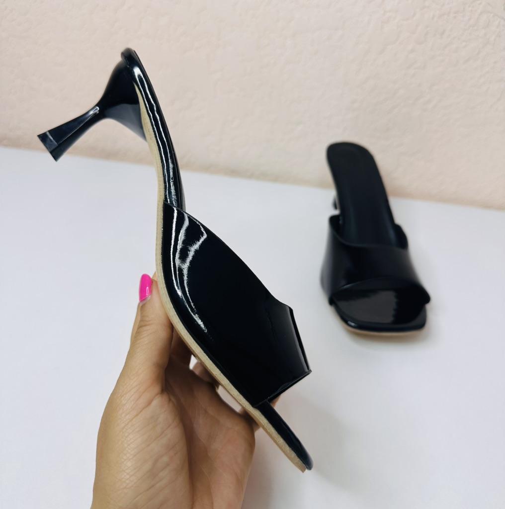 Летние босоножки на высоком каблуке из лаковой кожи, новые модные женские тапочки на тонком каблуке в британском стиле с квадратным носком — купить товар онлайн с бесплатной доставкой по всему миру!