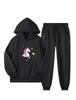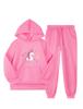 Новый модный комплект из 2 предметов для девочек, свитер с капюшоном и спортивные штаны с принтом мультяшного единорога, повседневная теплая спортивная одежда на флисовой подкладке для осени/зимы