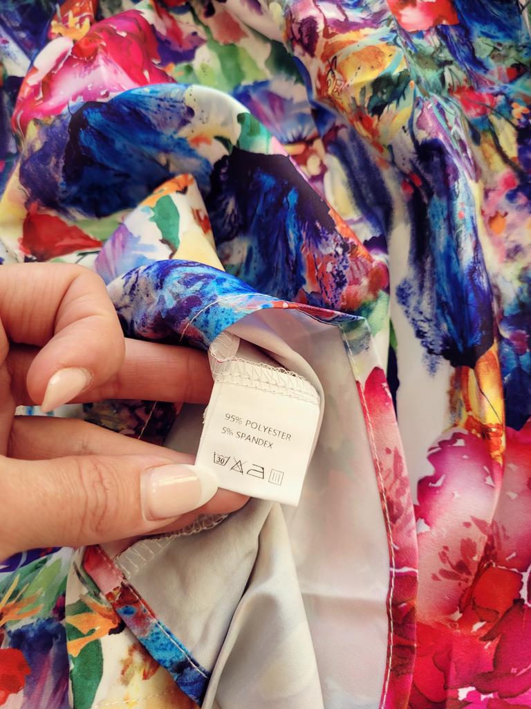 Объем груди у платья 92см и бедра меньше чем по таблице, это не хл ,а скорее всего л.Материал тонкий полиэстер, приятный к телу.