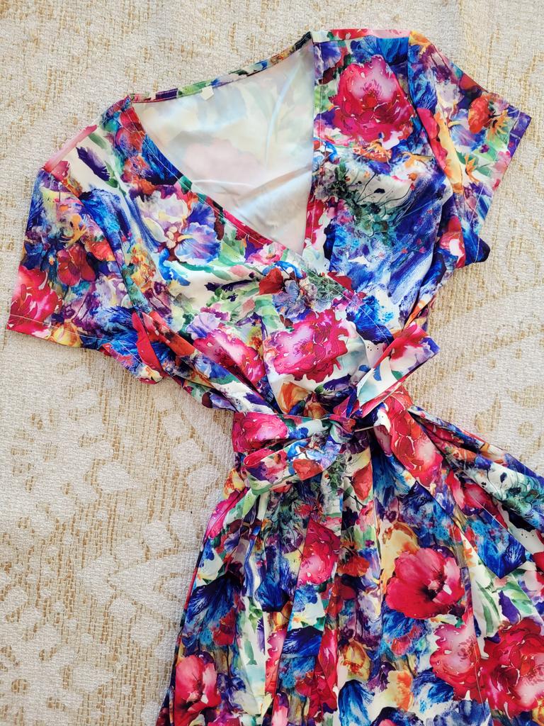 Потрясающее платье на лето. Стильное и комфортное🥰 🔸На выбор несколько расцветок, размеры: S-2XL. На мне М. - Замеры платья: Длина - 124 см ОГ - до 100 см ОТ - 66-100 см ОБ - 122 см - Мои параметры: Рост - 164 см ОГ - 86 см ОТ - 67 см ОБ - 95 см 🔸Платье сшито из приятного шелковистого на ощупь материала. Ткань не просвечивает и хорошо ложится. 🔸Платье А-силуэта на запАх. Талия на резинке. В комплекте идёт поясок. По бокам пришиты шлевки для него. 🔸Пошив аккуратный. Приятное соотношение цены и качества. Рекомендую 👍 Ставлю ⭐⭐⭐⭐⭐ Большое спасибо продавцу ❤️ и Joom ❤️