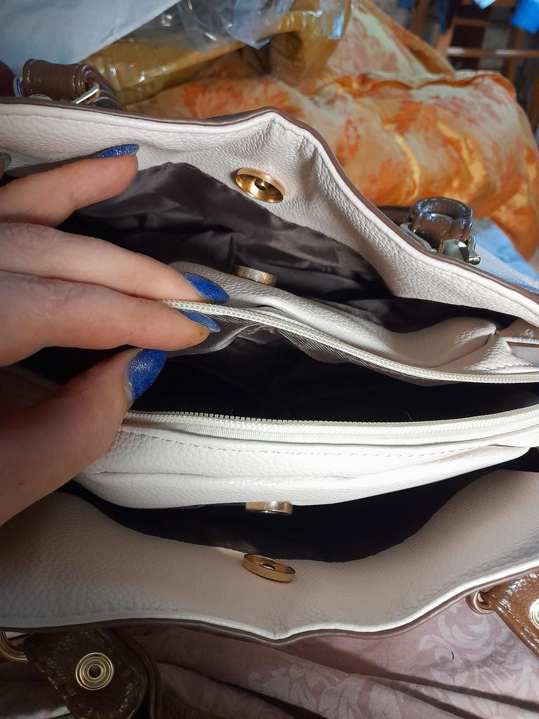 Ужасно то, что сумка пришла очень мятая, даже не знаю, как расправить, фурнитура вся разного цвета, от розового, до желтого, на картинке - серебро, странно смотрится, очень дешево, когда 2 разных цвета на фасаде сумки, не белая, а с желтизной....фу, кому отдать то)) кто на такое согласится)) А нахваливали...ну и женщины у нас, кому верить, только на своих ошибках и денежных средствах учиться))