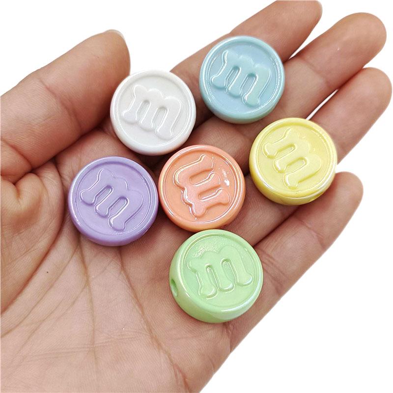 Творческий УФ-цвет M-буква Творческий 10 шт. сплющенный браслет изготовление плоских круглых бусин подвески подвески свободные бусины акриловый материал DIY ювелирные аксессуары