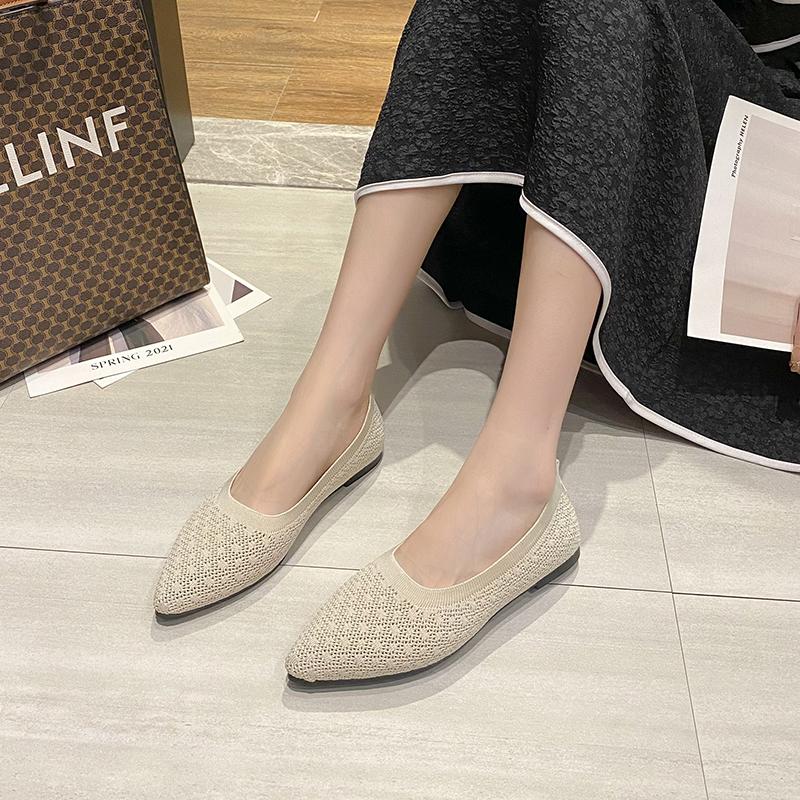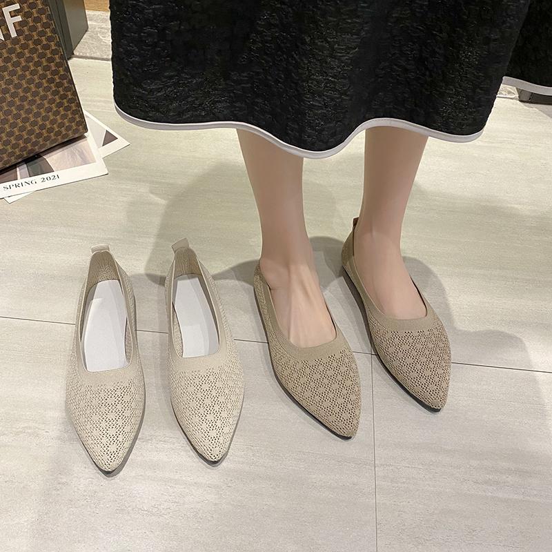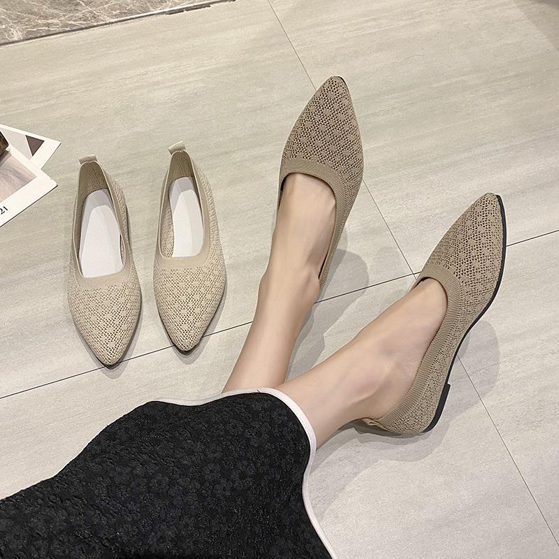 2024, женские сетчатые дышащие туфли с острым носком, женские удобные балетки на плоской подошве, неглубокие лоферы без шнуровки, офисные туфли-лодочки на плоской подошве