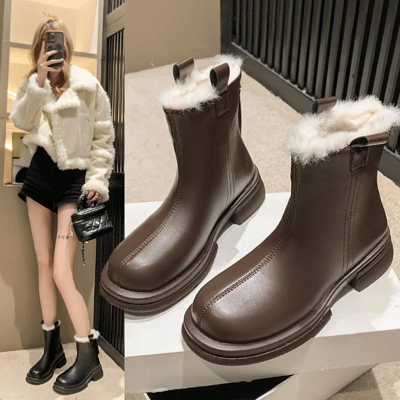 Зимние теплые модные женские ботинки. Новинка 2024 года: водонепроницаемые нескользящие коричневые полусапожки. Простые и универсальные женские ботинки на платформе на молнии.