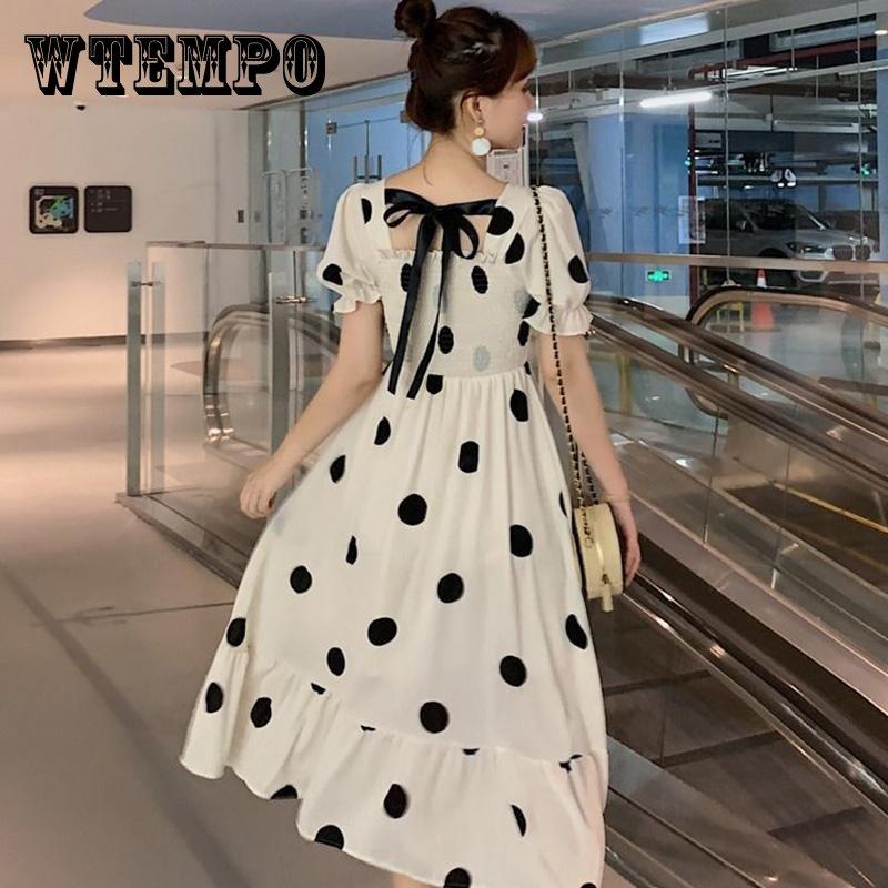 Женское летнее платье в горошекПлатье, прикрывающее живот и стройнящее, для отдыха, в милом консервативном стиле, с вырезом на спине, сказочная юбка, уменьшающее возраст, для поездок на работу — купить товар онлайн с бесплатной доставкой до всему миру!