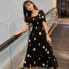 Женское летнее платье в горошекПлатье, прикрывающее живот и стройнящее, для отдыха, в милом консервативном стиле, с вырезом на спине, сказочная юбка, уменьшающее возраст, для поездок на работу