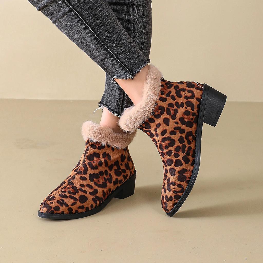Женская обувь 2024, модные женские ботинки с леопардовым принтом, новые повседневные ботинки на молнии сзади, женские пикантные теплые ботильоны на квадратном каблуке — купить товар онлайн с бесплатной доставкой до всему миру!