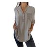 Поднимите свою моду на новый уровень с этой женской однотонной классической модной рубашкой. Эта стильная и профессиональная рубашка имеет длинные рукава, карманы, расшивку пайетками и модный дизайн с V-образным вырезом..