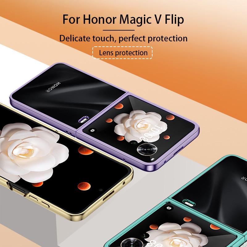 Кейс для Назначение Honor Magic V Flip MagicV VFlip Ультратонкий Твердый Гальванический Цветной / Разделенный корпус Прозрачный защитный чехол Ударопрочный Задний корпус Защита от падения