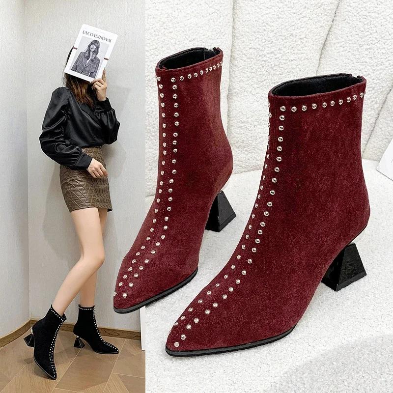 Женские ботильоны, зимняя мода 2024, женские ботинки с острым носком, размер 42, модные простые элегантные женские модельные туфли на высоком каблуке — купить товар онлайн с бесплатной доставкой по всему миру!