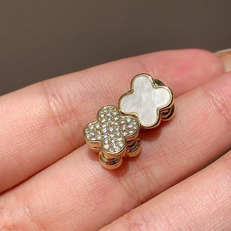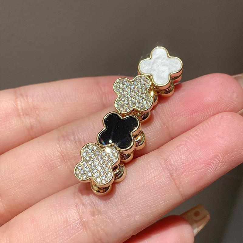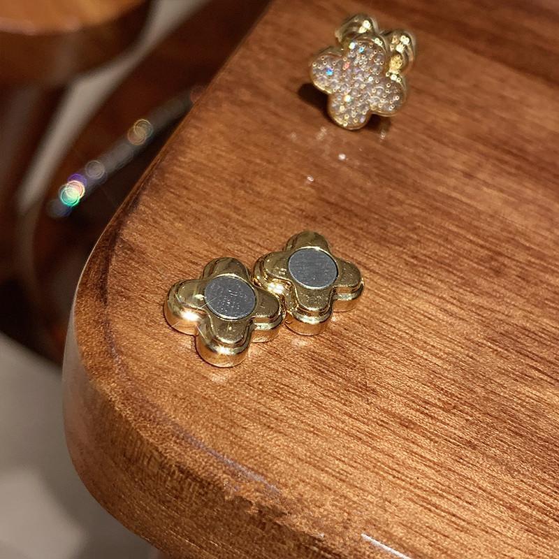 Модные инкрустированные бриллиантами клеверные магнитные зажимы для ушей, усовершенствованное чувство изысканности без отверстий для ушей, серьги с железным магнитом, зажим для ушей, женские серьги