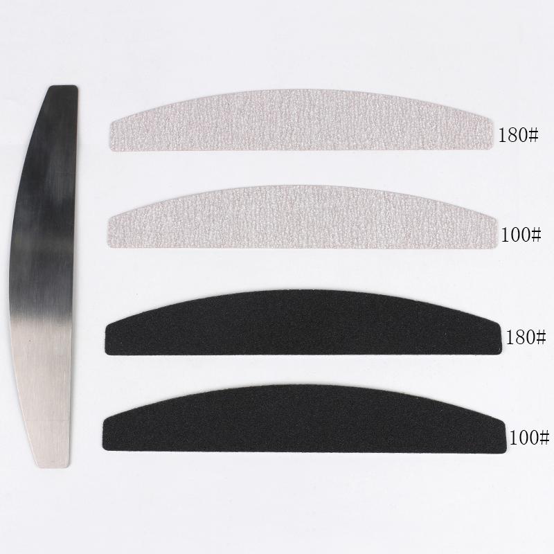 10 шт., черная/серая съемная пилочка для ногтей наждачной бумагой с ручкой из нержавеющей стали, металлическая сменная насадка для ногтей 100/180 для маникюра
