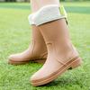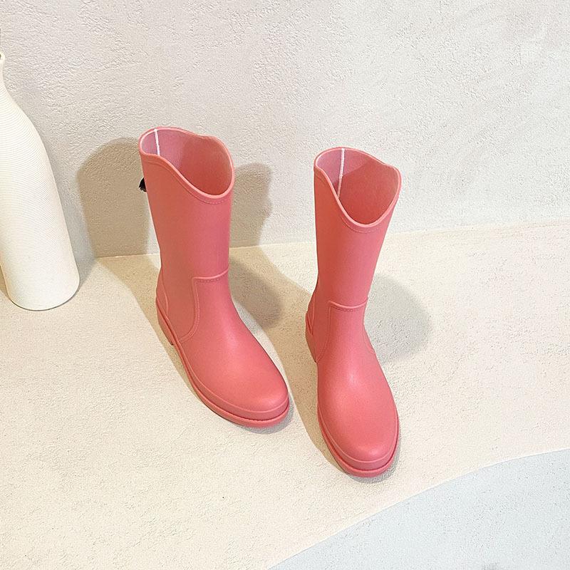 Резиновые сапоги Модные и простые резиновые сапоги для средней школы Женская водонепроницаемая и противоскользящая износостойкая верхняя обувь Женская обувь с рабочими рукавами для кухни