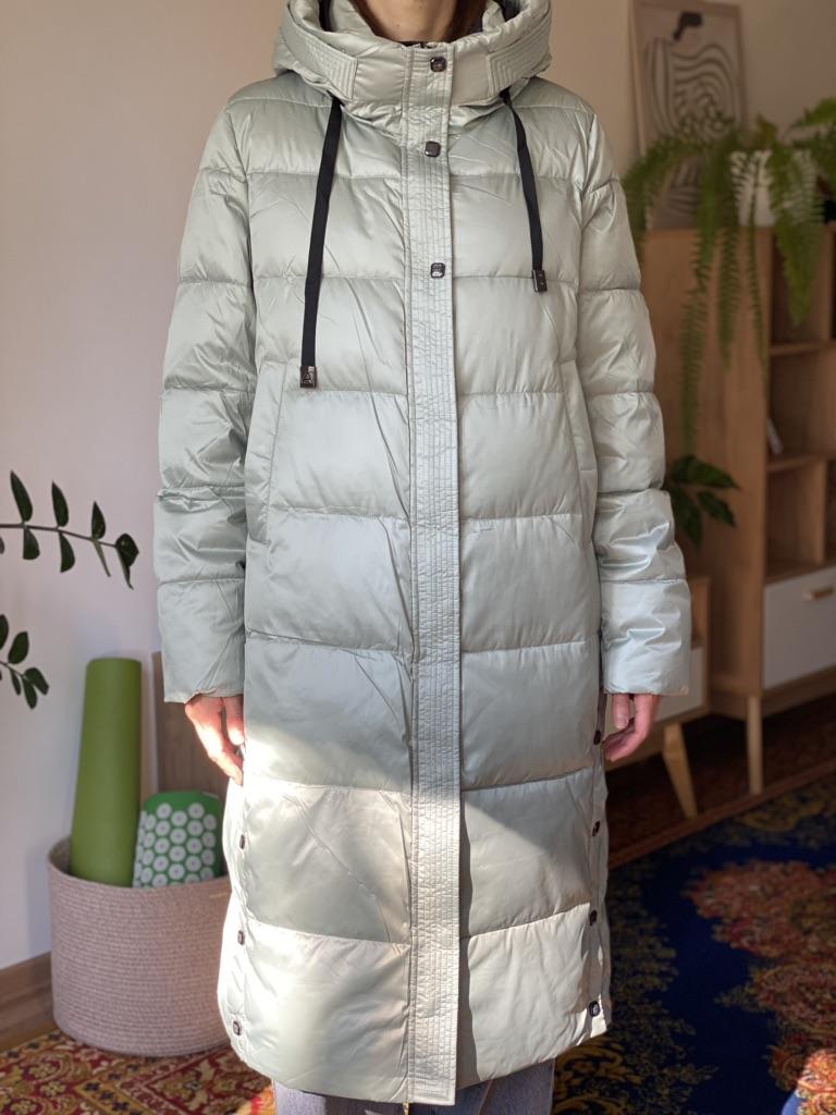 Вторая куртка из этого магазина прямого силуэта. Качество исполнения очень хорошее, набита равномерно, фурнитура качественная. Выбрала в мятном цвете и размере XL, на мои параметры села свободно, куртка полностью соответствует замерам в размерной таблице. Застежка на молнию, и сверху планка на кнопках. Кнопки есть так же по боковым разрезам, можно отстегнуть для удобства. Длина рукава хорошая, внутри есть манжеты, карманы на кнопке. Доставка из России, куртка пришла за 4 дня 🔥🔥🔥 к покупке рекомендую!