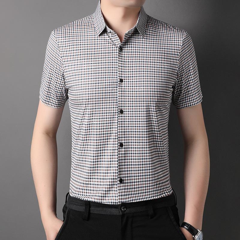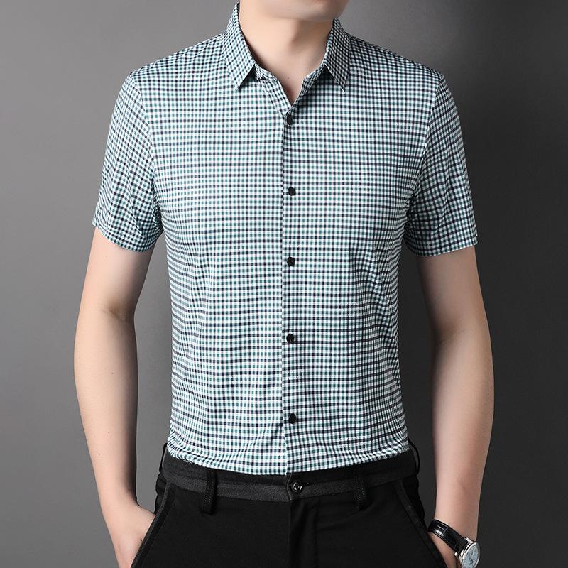 Летняя новая мужская клетчатая рубашка с короткими рукавами, деловая рубашка без глажки, модный бренд, корейская версия, модный мужской стиль