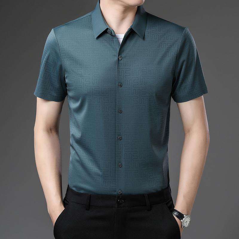 Летняя новая стильная рубашка с короткими рукавами с лацканами для мужчин, деловая повседневная однотонная рубашка для мужчин молодого и среднего возраста