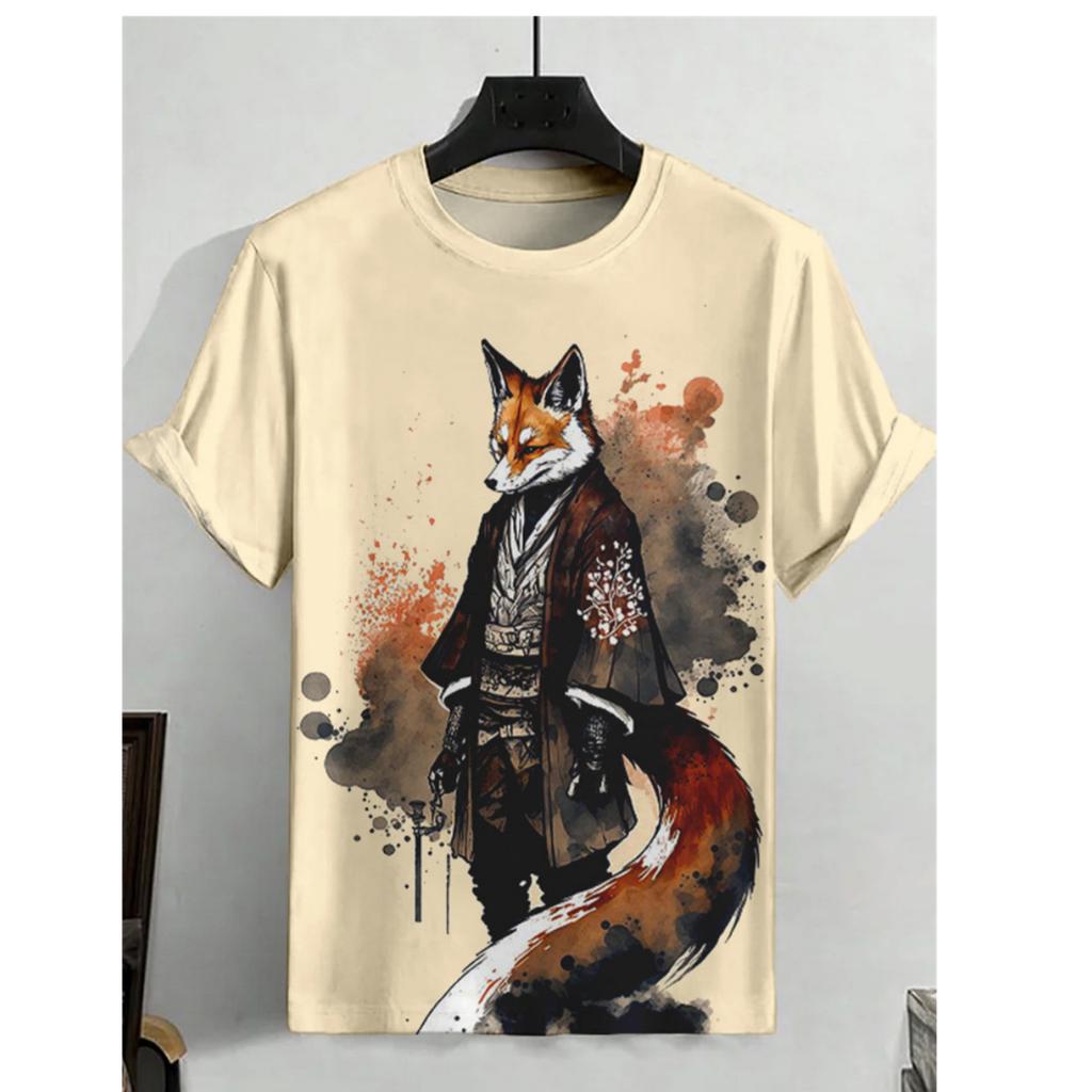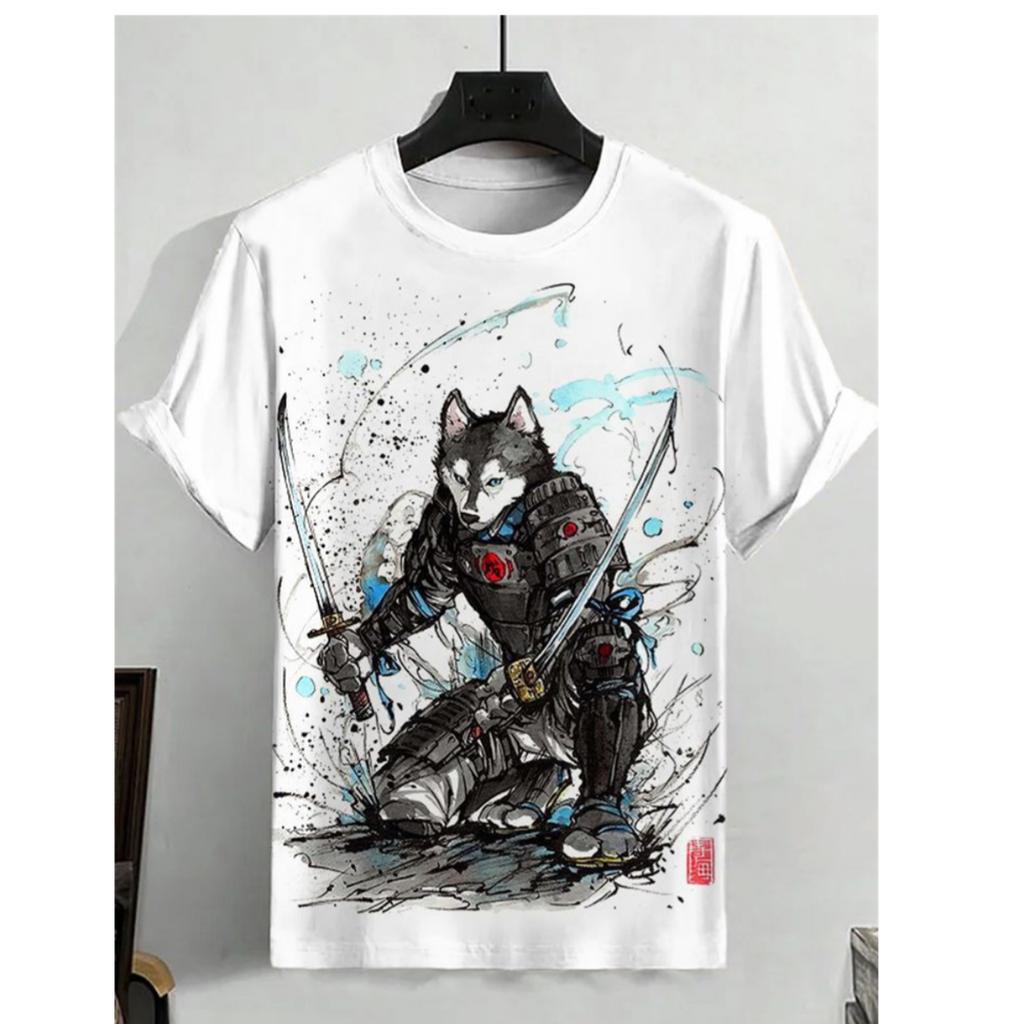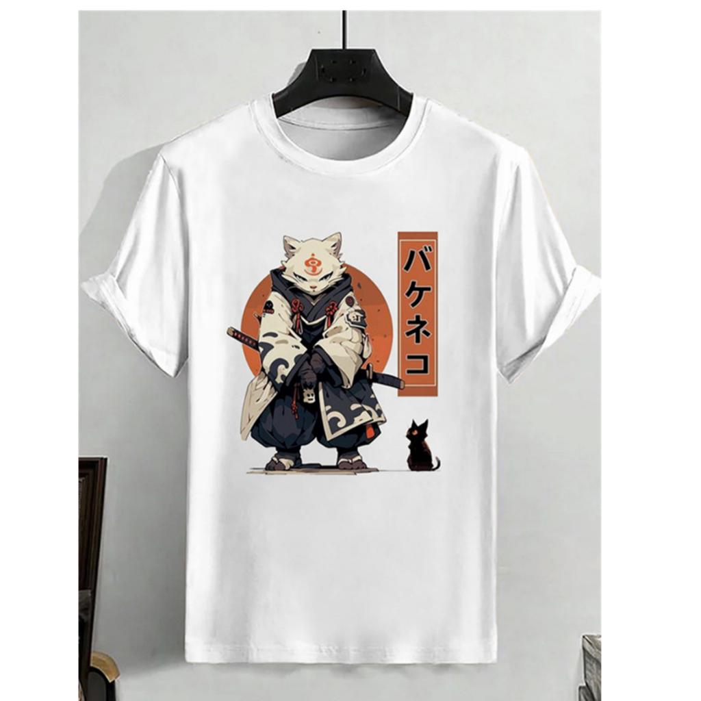 Мужская футболка с изображением животных, японская футболка с рисунком самурая и кота, футболки с короткими рукавами и 3d принтом, мужская одежда больших размеров, топы, новинка лета