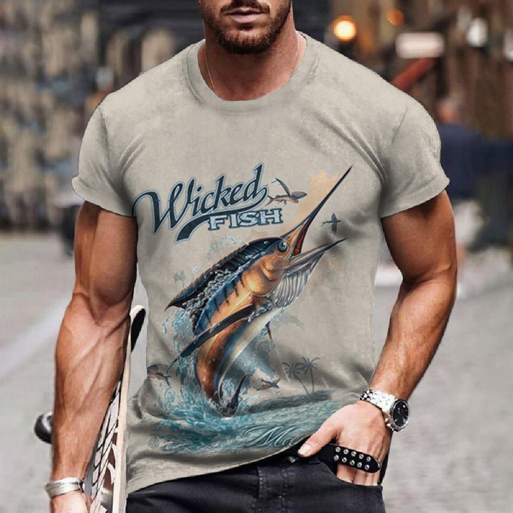 Винтажная футболка для рыбалки, мужские топы с короткими рукавами, одежда с рисунком рыбы, пуловер с круглым вырезом, уличная одежда большого размера для мужских рубашек, футболок