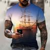 Винтажные футболки Мужская весенняя одежда Одежда с рисунком лодки Уличная мужская одежда Повседневные топы с коротким рукавом для мужчин Футболки
