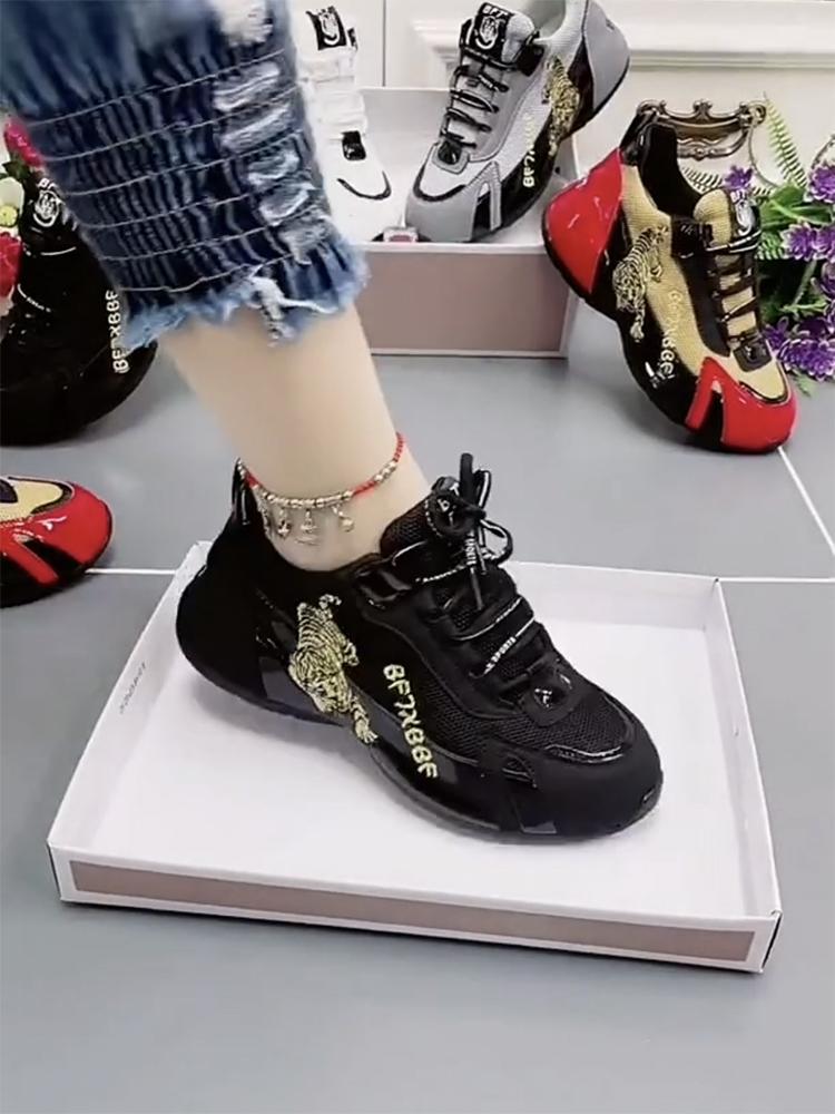 Новая женская спортивная обувь, дышащие женские кроссовки с вышивкой тигра, женские теннисные туфли на шнуровке с низким берцем по цвету