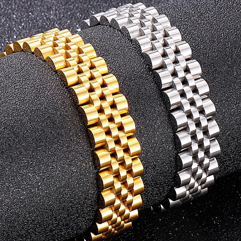 15 мм шириной 7/8/9 дюймов длиной браслет в стиле цепочки для часов для мужчин золотой цвет нержавеющая сталь мужской браслет ювелирные изделия для мальчиков аксессуары