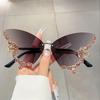 Женские очки-бабочки без оправы, блестящие стразы, градиентные декоративные оттенки, легкая силиконовая опора для носа, дизайн с изогнутыми ножками