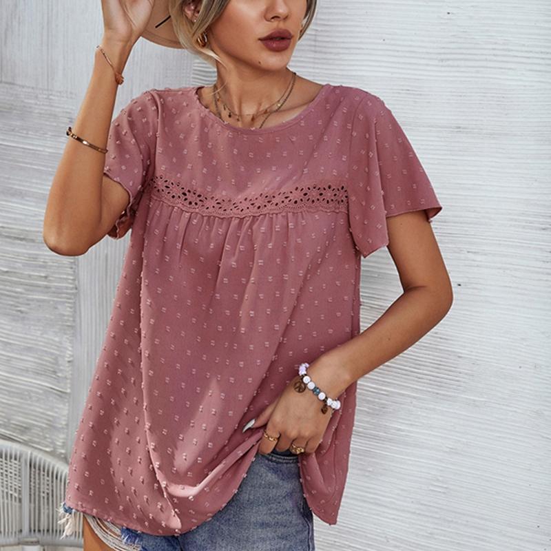 Женская летняя кружевная повседневная свободная футболка с круглым вырезом и рукавами в виде листьев лотоса в горошек