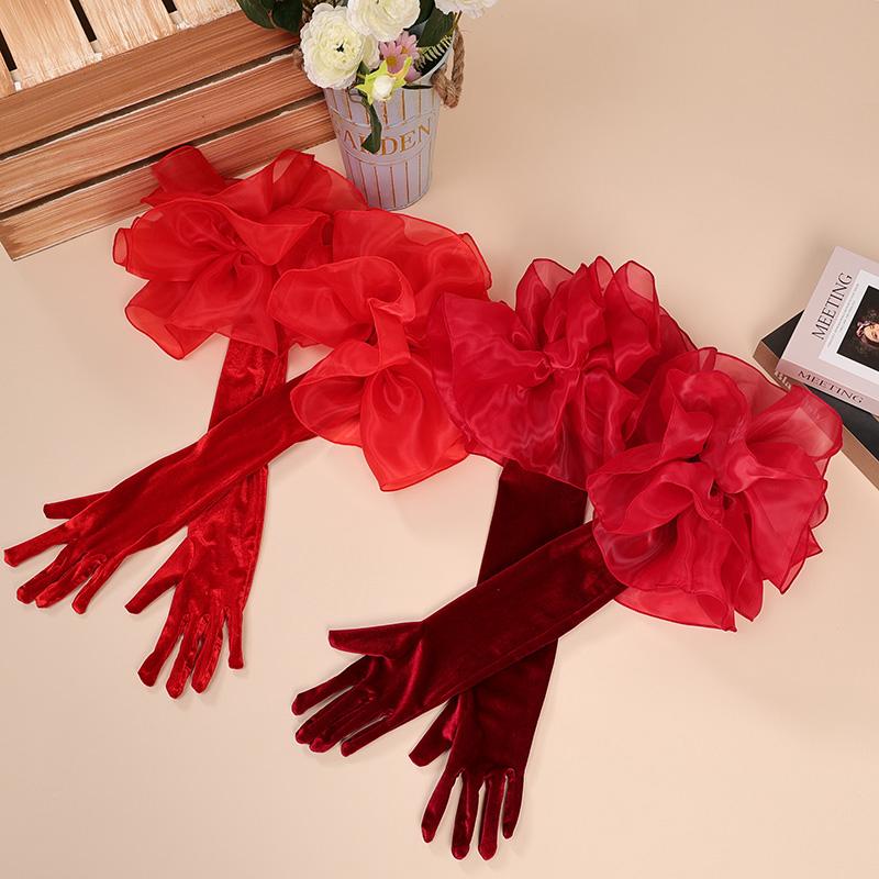 1 пара 55 см черные перчатки с длинными рукавами красные бархатные перчатки бархатные перчатки в форме цветка